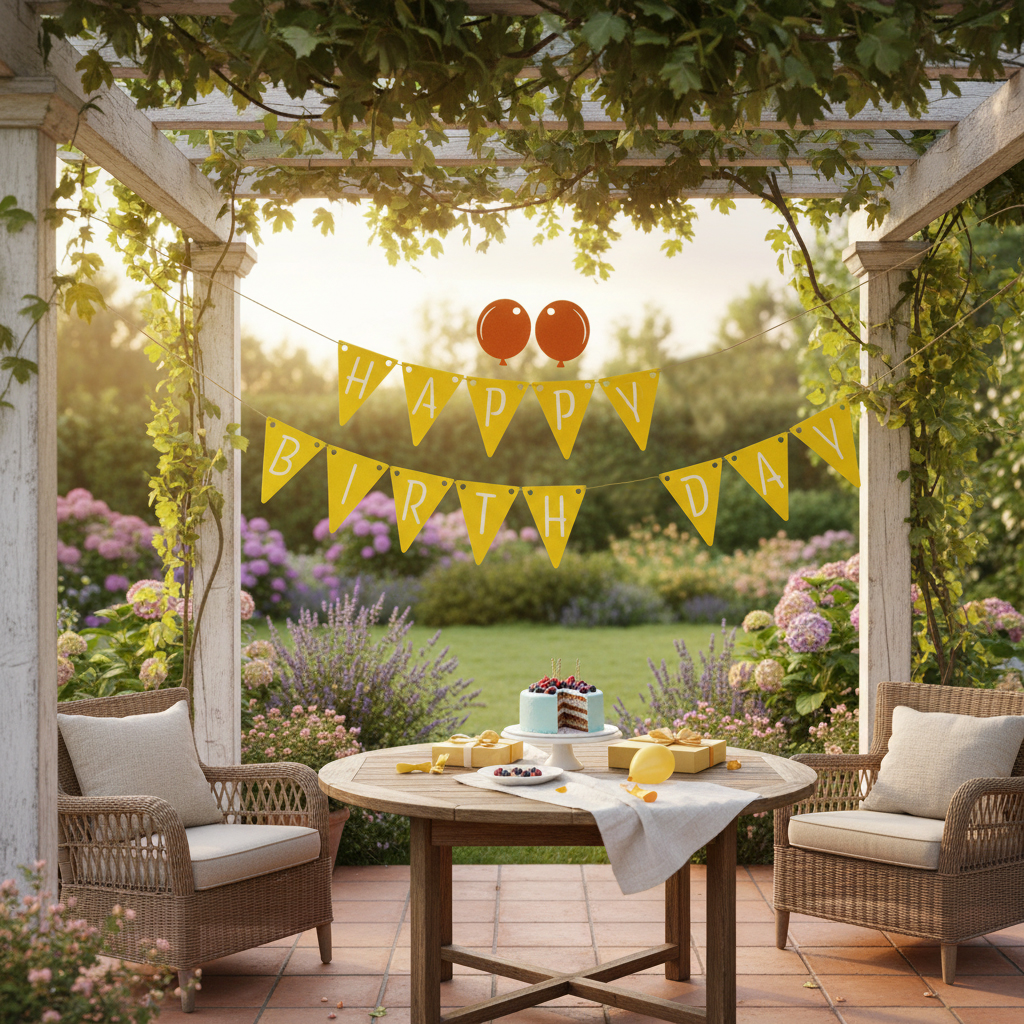 Zaveste vlajočku do jedného vlákna ako nápis alebo rozdeľte slová na dve úrovne na dekoráciu vašej narodeninovej steny.
