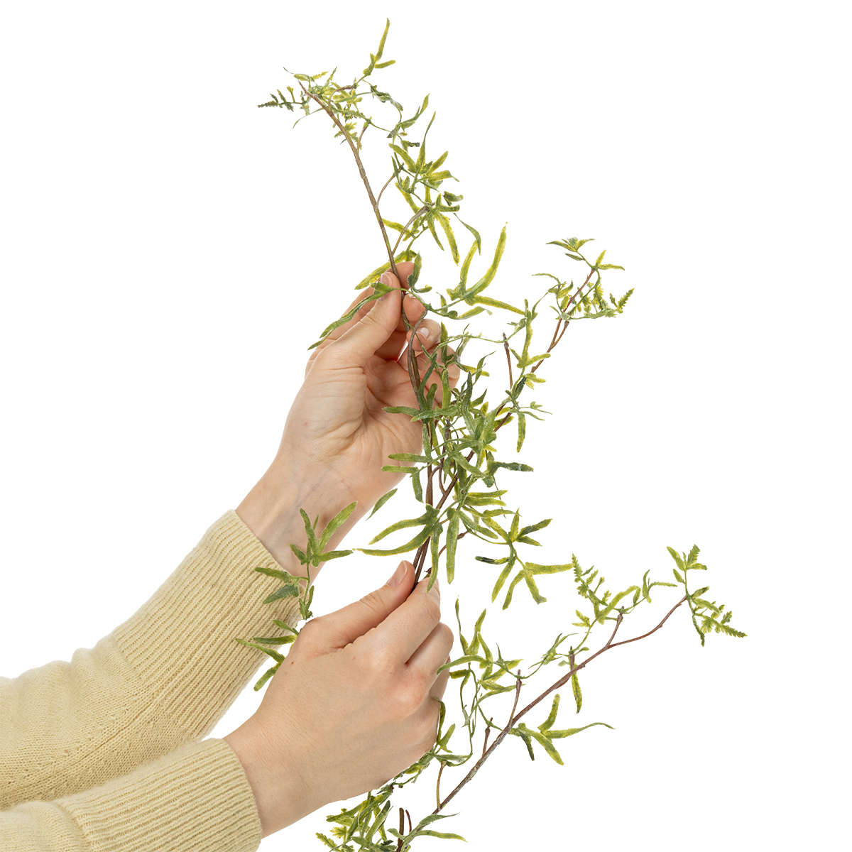 Girlanda zo špargle je skutočným všestranným doplnkom vo svete dekorácií. Jej štíhle, jemné listy jej dodávajú vzdušnú ľahkosť, vďaka čomu je ideálna pre moderné, rustikálne alebo dokonca klasické štýly interiérového dizajnu. S dĺžkou 170 cm ponúka množstvo kreatívnych nápadov: či už ako dekorácia na stôl, na obalenie zábradlia alebo ako atmosférická obrúska na dvere a okná. Umelá girlanda je vyrobená z odolného plastu a žiari sviežim zeleným odtieňom, ktorý vyzerá klamlivo skutočne. Je odolná, ľahko sa čistí a dlho zostáva v perfektnom stave. Ideálna pre každého, kto chce nenáročnú, no zároveň štýlovú dekoráciu. Pre obzvlášť harmonický vzhľad ju možno kombinovať s kvetmi alebo LED svetielkami. Dopĺňa to celkový vzhľad a vytvára ešte slávnostnejšiu atmosféru. Táto girlanda je skutočným vrcholom, najmä na svadbách, recepciách alebo vonkajších podujatiach. Predstavte si ju ako romantický oblúk na váš obrad alebo štýlový okraj na bufety. Hodí sa všade, kde je potrebná elegancia a prirodzenosť – a to bez väčšej námahy. Po aranžovaní zostáva stabilná a priťahuje mnoho obdivných pohľadov.