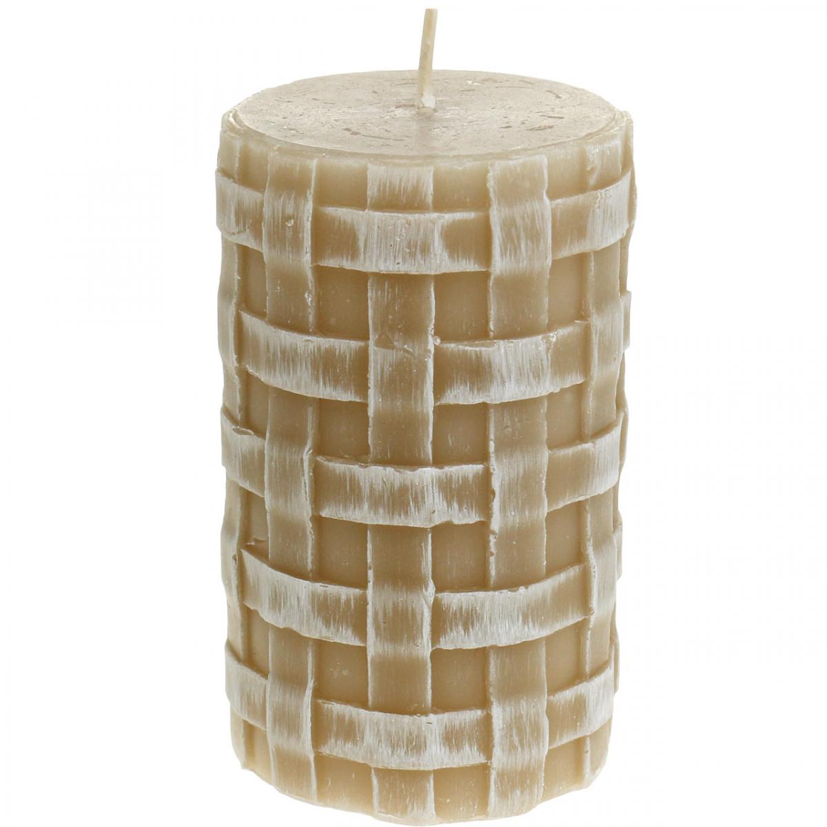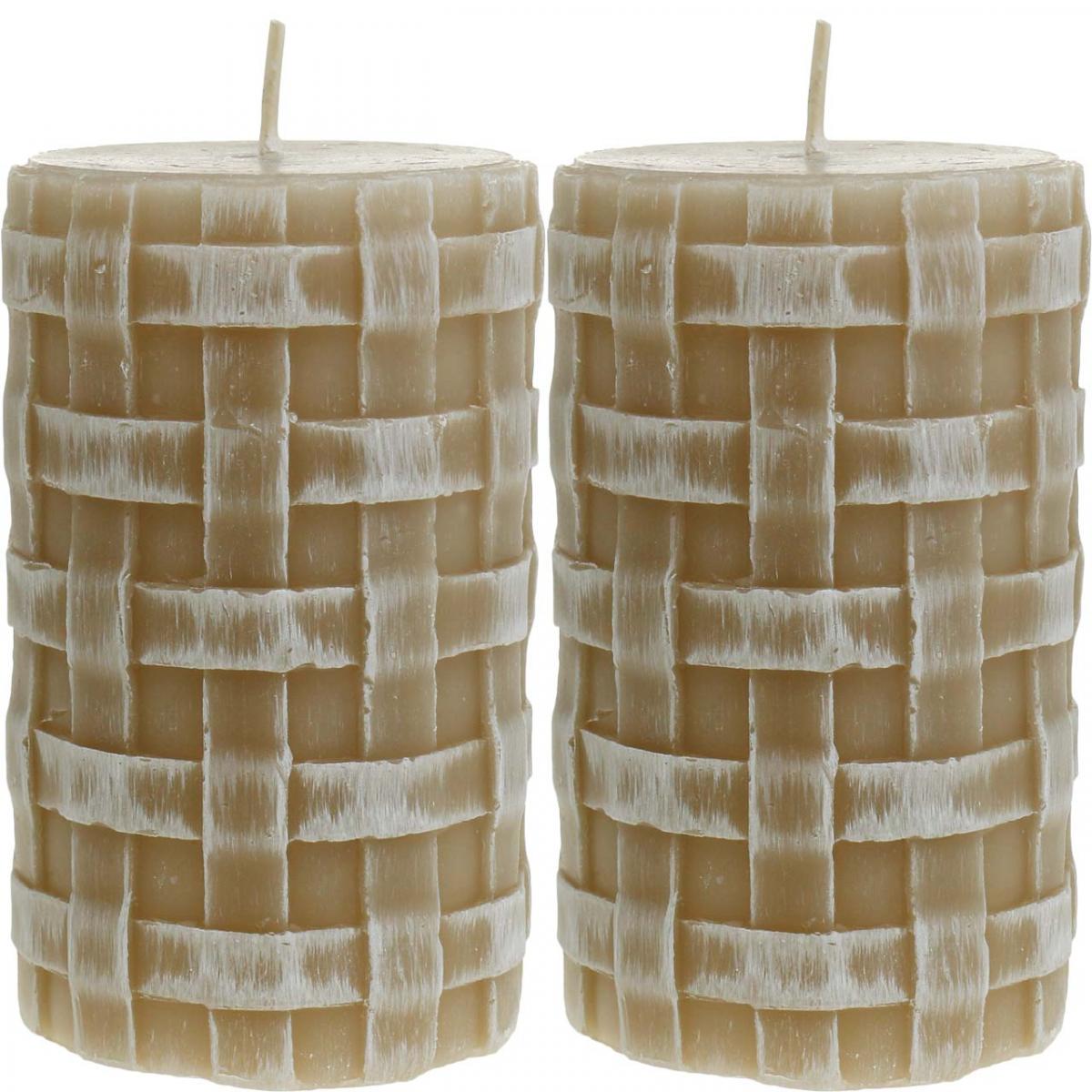 Názov produktu: Hnedé stĺpové sviečky s rustikálnym pleteným vzorom, 110/65 mm, Safe Candle, sada 2 kusov