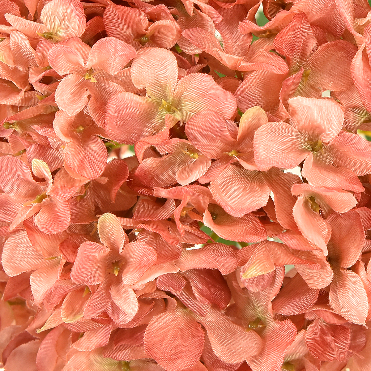 Ružová hortenzia má so svojou dlhou stonkou celkovú dĺžku asi 80 centimetrov a priemer v hlave kvetu asi 20 centimetrov. Jednotlivé kvietky sú poprekladané aj trochou zelene, čo vytvára jemný trblietok, ktorý dopĺňajú dva malé oranžové lístky a štyri veľké zelené lístky.