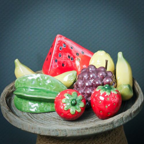 Či už v kuchyni, v obývačke alebo ako atraktívna dekorácia reštaurácie, dekoratívne plody noblesnej značky VIANA skvele upútajú pozornosť. Napríklad môžete vytvoriť fascinujúci akcent vo vstupnom priestore umiestnením dekoratívneho hrozna a prípadne jeho usporiadaním so skutočnými listami viniča. Nádhernú dekoráciu na stôl môžete vykúzliť aj v kombinácii s inými dekoračnými keramickými plodmi. Ovocie jednoducho položte na ozdobnú misku. Takýto súbor je vrcholom po celý rok.