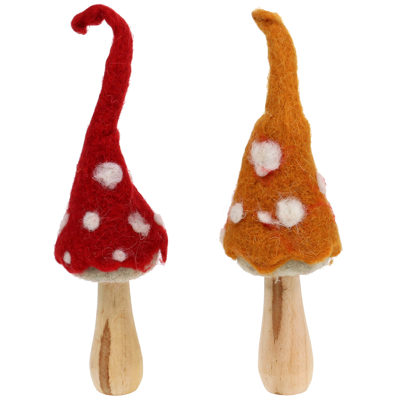 Roztomilú jesennú dekoráciu dostanete v plastovom vrecku. Veľkosť dvoch hríbov na státie - keď sú špičky klobúkov rovné - sa pohybuje medzi asi 28 a 29,5 centimetra kvôli pružnej, mäkkej plsti. Šírka sa pohybuje medzi 7 a 7,5 centimetra.