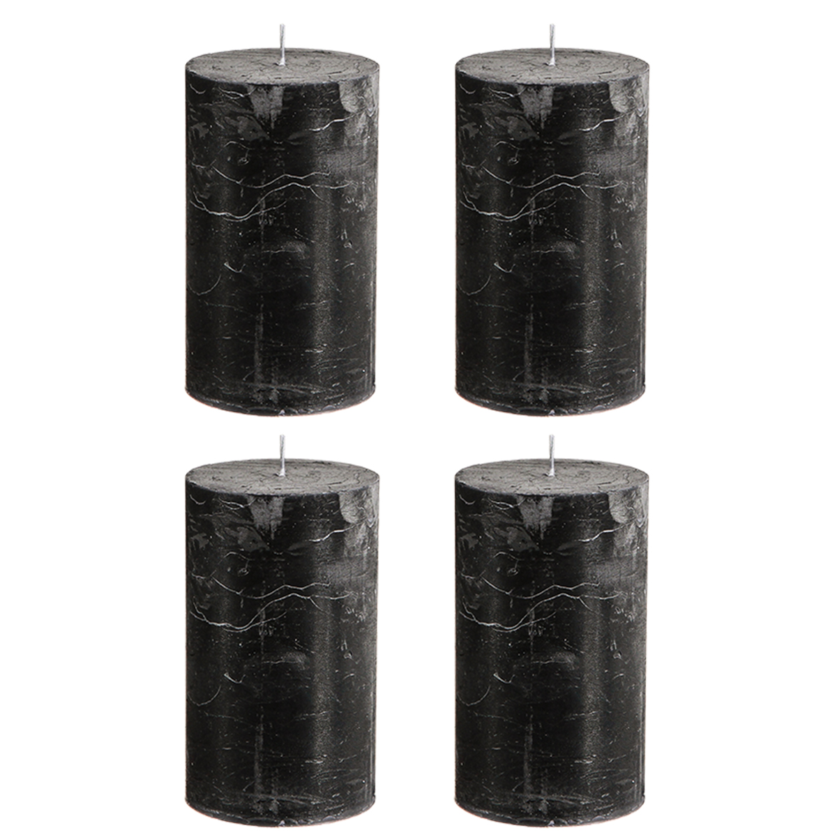 Čierne stĺpové sviečky, jednofarebné, 70 × 120 mm, sada 4 kusov - Rustikálne dekoratívne sviečky pre štýlovú výzdobu stola a aromaterapiu