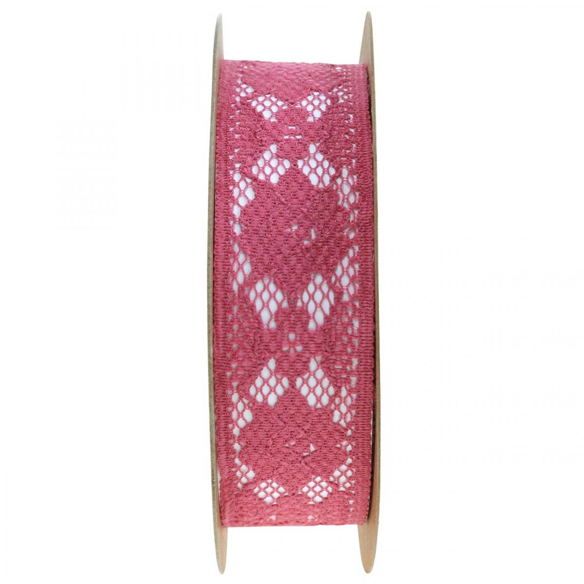 Názov produktu: Čipková stuha ružová 25mm dekoračná stuha čipka 15m