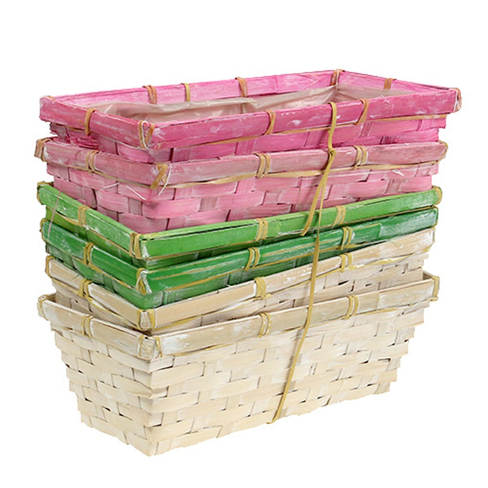 Vďaka štíhlemu obdĺžnikovému tvaru sa koše perfektne hodia na parapet a komodu. Osaďte kvetinové košíky krásnymi tulipánmi, nezábudkami, maceškami a muškátmi, ktoré svojimi farebnými kvetmi dokonale ladia s košíkom. Košíky môžete ďalej ozdobiť a personalizovať ozdobnou stuhou a kvetinovými ihličkami. Celé to vyzerá obzvlášť skvele, ak sa rozhodnete darovať košíky na štiepky s rastlinou!