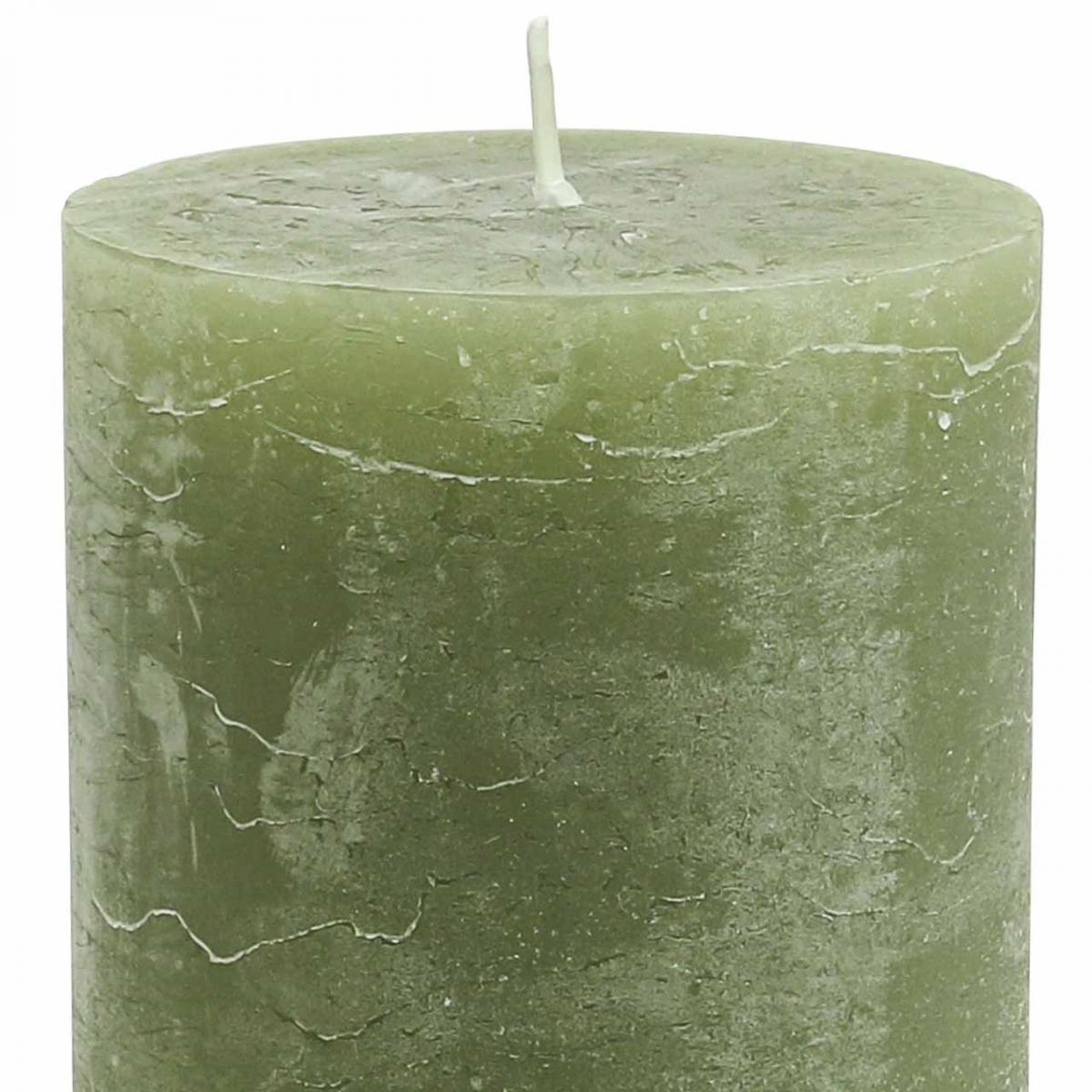 Jednofarebné olivovozelené stĺpové sviečky, 85x120 mm, 2 kusy, na adventné vence a dekorácie stolov