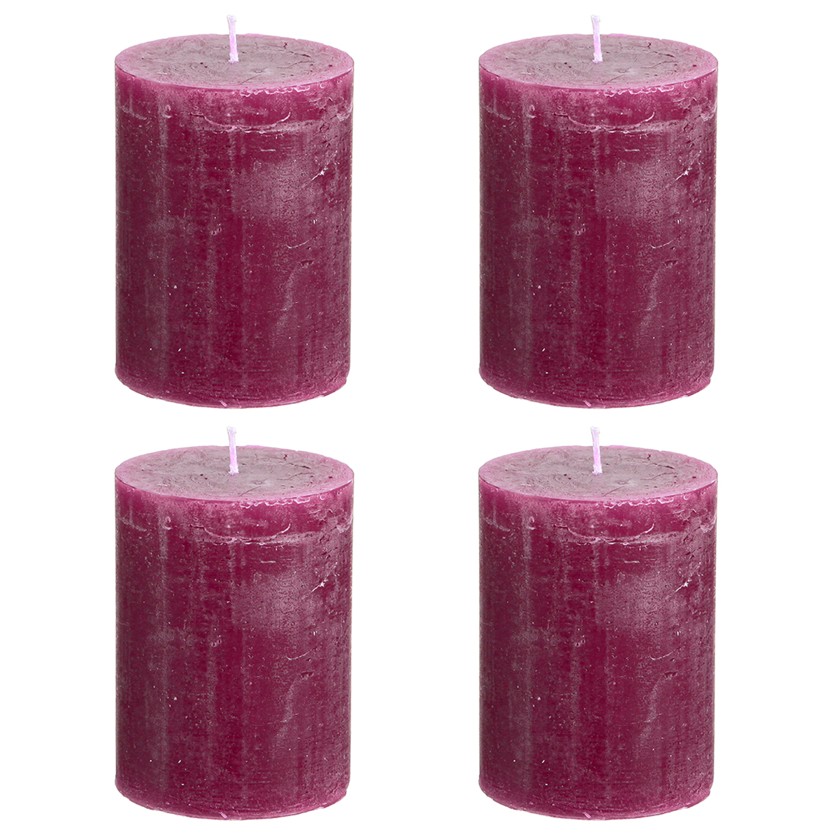 Názov produktu: Jednofarebné stĺpové sviečky, fialové bobule, 60x80mm, 4 kusy - dekoratívne, dlhá doba horenia, ručne vyrobené
