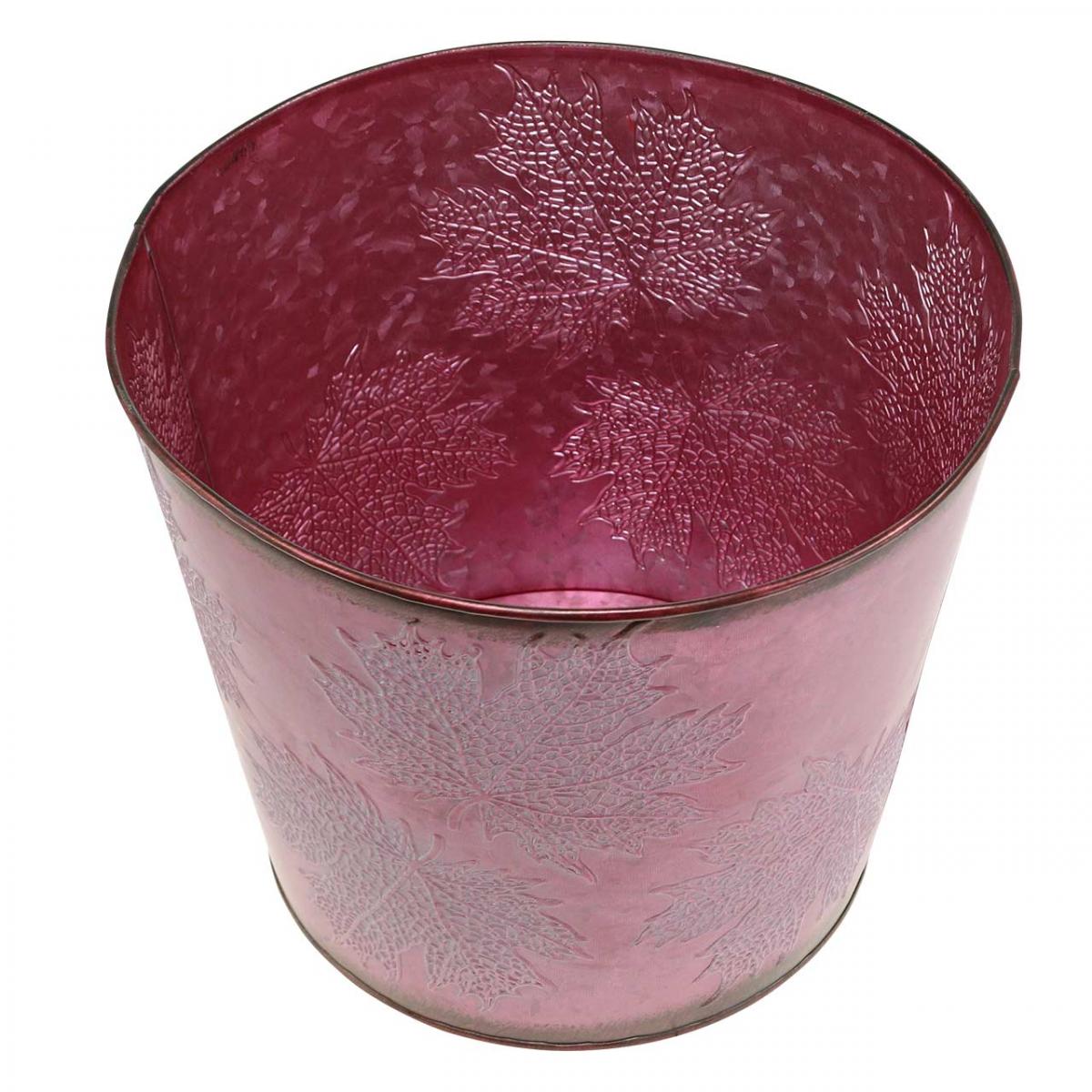 Názov produktu: Jesenný črepník, vedro na rastliny, kovová dekorácia s listami vínovočervená Ø25,5cm V22cm