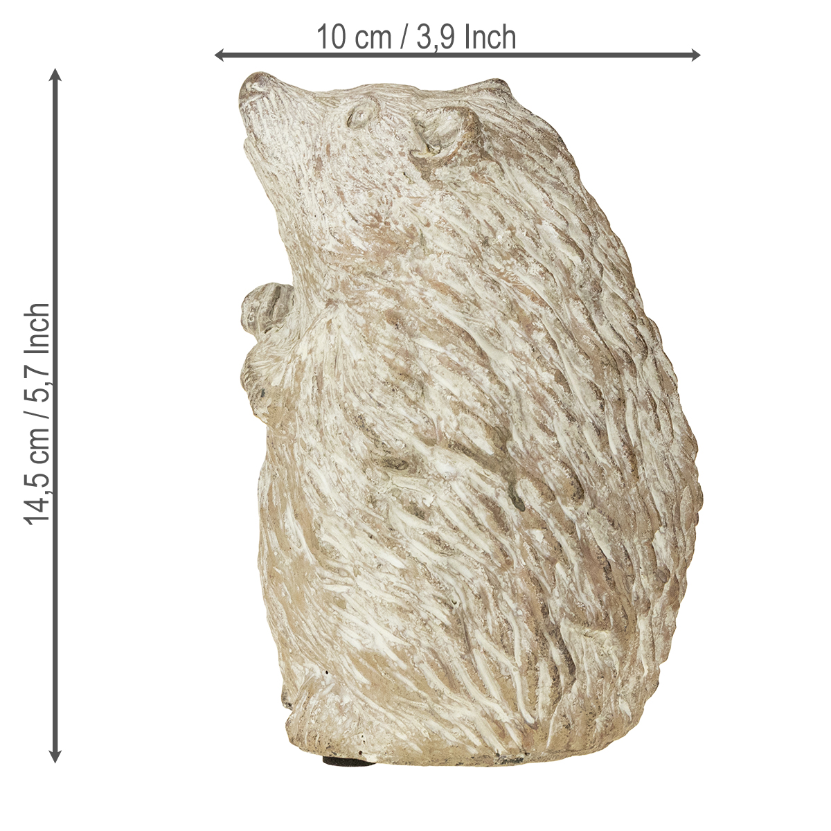 Predstavte si prechádzku zlatistým jesenným záhradným lístím pod nohami. A zrazu – ježko! Nie však len tak hocijaký ježko. Táto dekoratívna figúrka ježka vyžaruje šarm aj štýl. Svojím nostalgickým retro vzhľadom, ktorý pripomína minulé časy, vytvára útulnú atmosféru. Hnedý, bielo natretý liaty kameň dokonale dopĺňa akýkoľvek prírodný štýl, či už vidiecky alebo vintage.