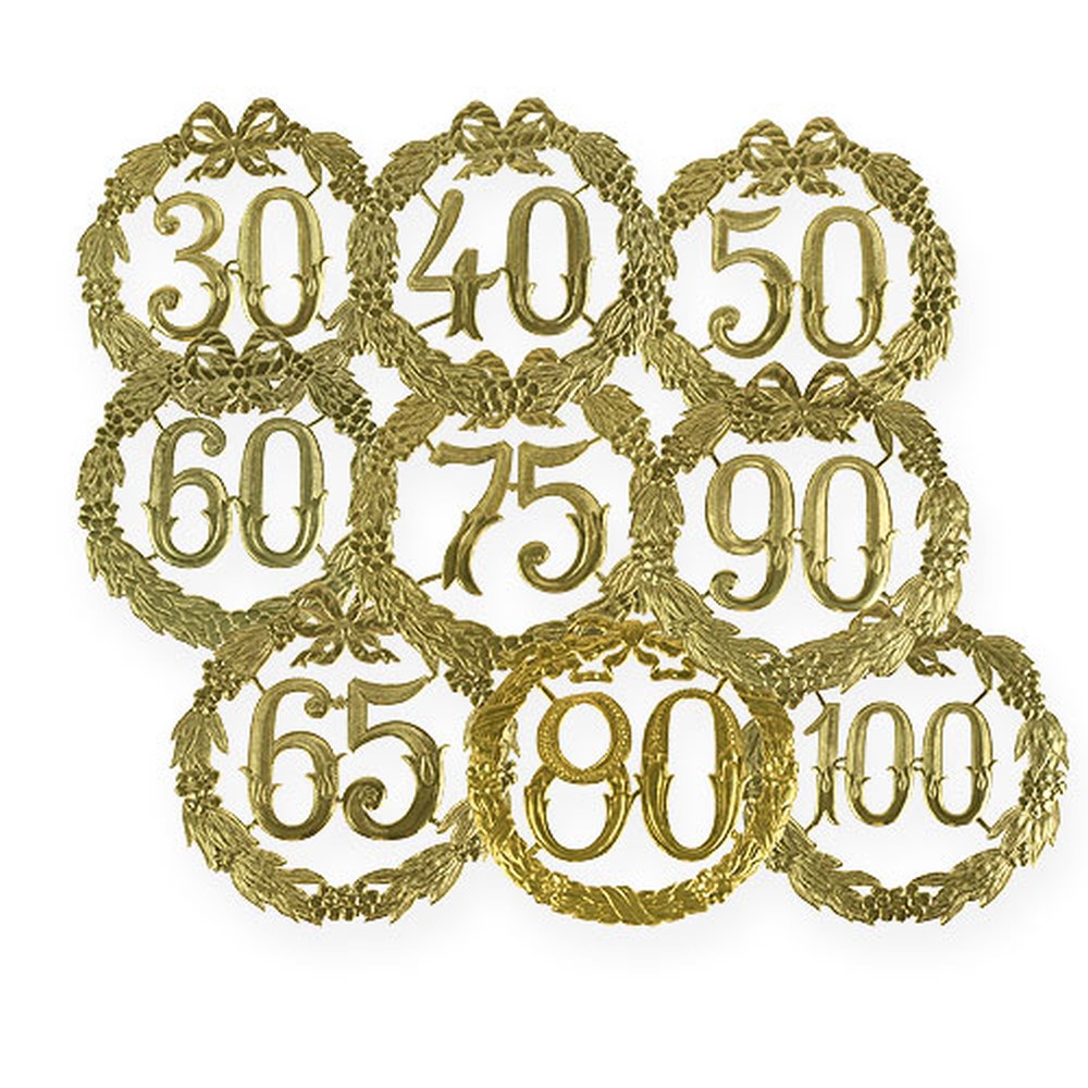 Každé zlaté výročné číslo má priemer približne 24 centimetrov. Máme pre vás pripravený veľký výber jubilejných čísel v zlatej farbe: jednoducho kliknite na záložku "Varianty produktov" a objednajte si to správne oslavné číslo z pohodlia domova!