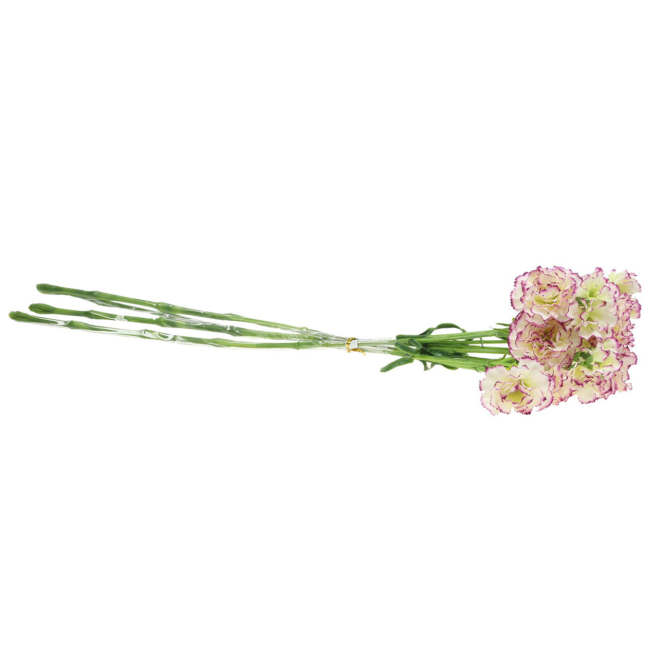 Romantický, rozkošný, stredomorský, božský – ako kvet spája karafiát toľko aspektov. So svojimi kvetmi vo farebnej kombinácii bielej a fialovej tu tieto umelé klinčeky vyzerajú obzvlášť nádherne a znamenite. Detailné prevedenie umelého kvetu pripomína klinček ušľachtilý, ktorému sa hovorí aj vidiecky alebo botanicky Dianthus caryophyllus. Každá stonka má presne 5 rôznych veľkých súkvetí a je tiež flexibilná a ohybná. Takže môžete jednoducho aranžovať kvetinové aranžmány, ako sú kytice a kvetinové aranžmány.