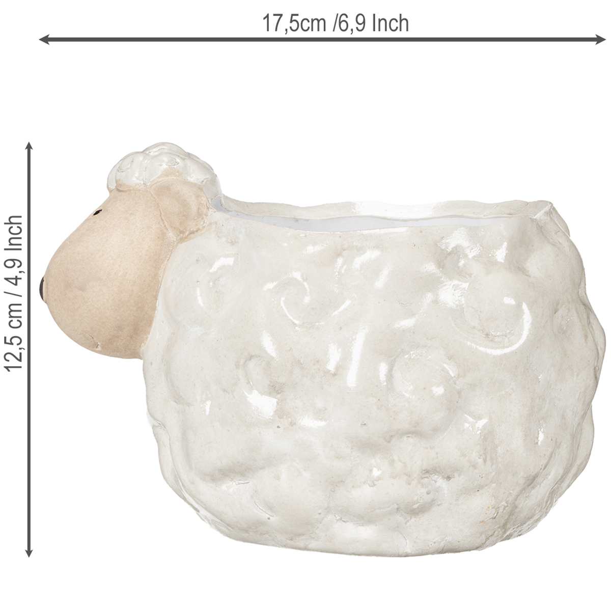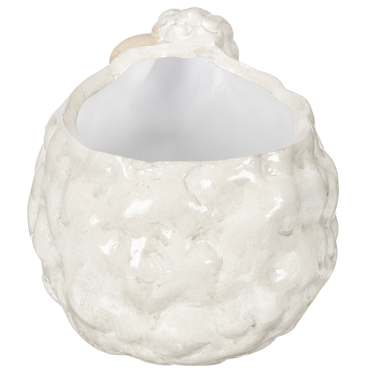 Tento keramický kvetináč v tvare ovečky je vyrobený z vysoko kvalitnej bielej keramiky a s láskou navrhnutý s nadýchanou textúrou a roztomilou tváričkou. Tento ručne vyrobený detail dodáva nádych hravosti a sviežosti bez toho, aby bol gýčový. S priemerom 17 cm a výškou 13 cm je tento dekoratívny kúsok všestranným doplnkom pre rastliny, ktorý sa hodí aj na úzke police alebo parapety.
