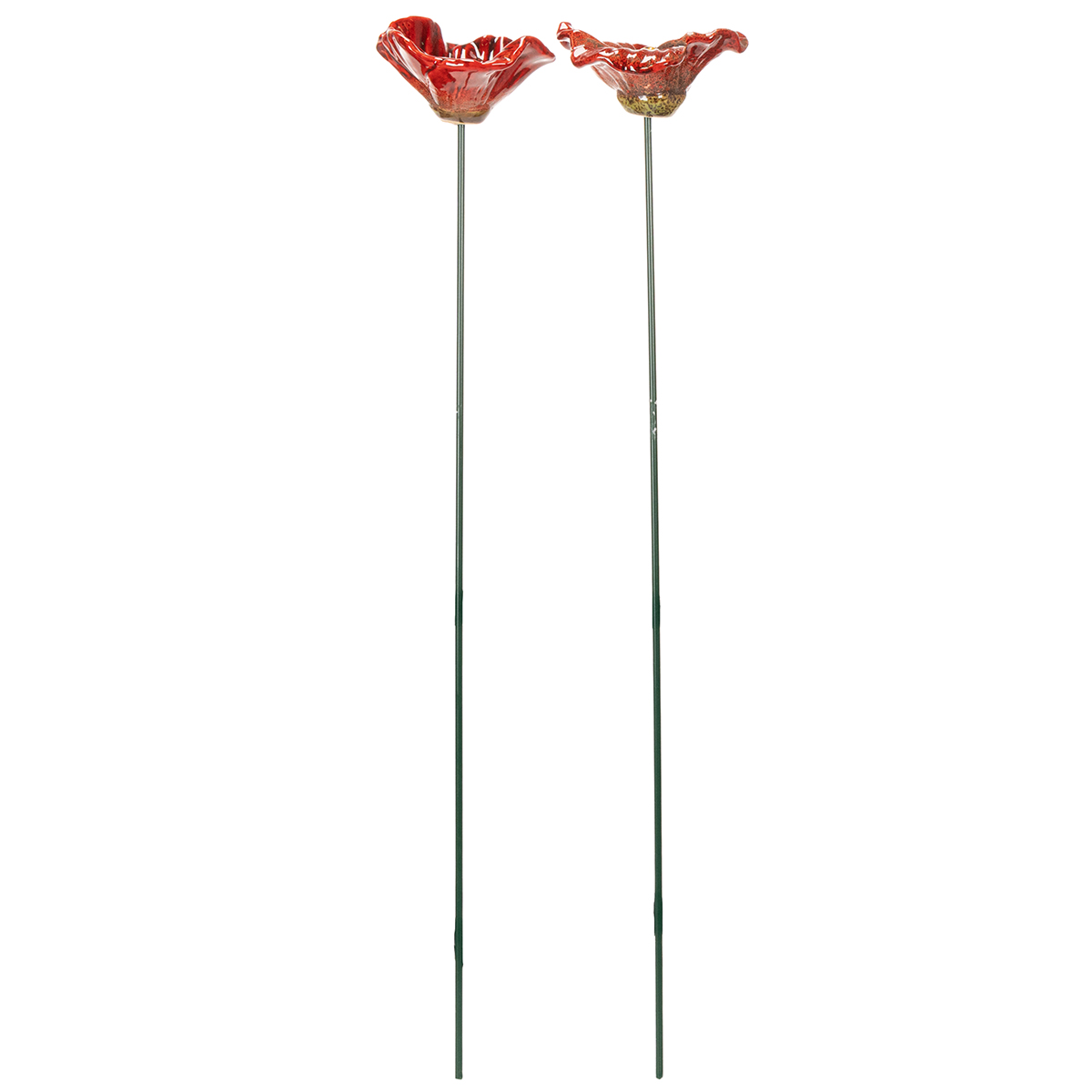 Keramický záhradný kolík s makom, nezvyčajný dizajn do záhonov, 52 cm, 2 kusy