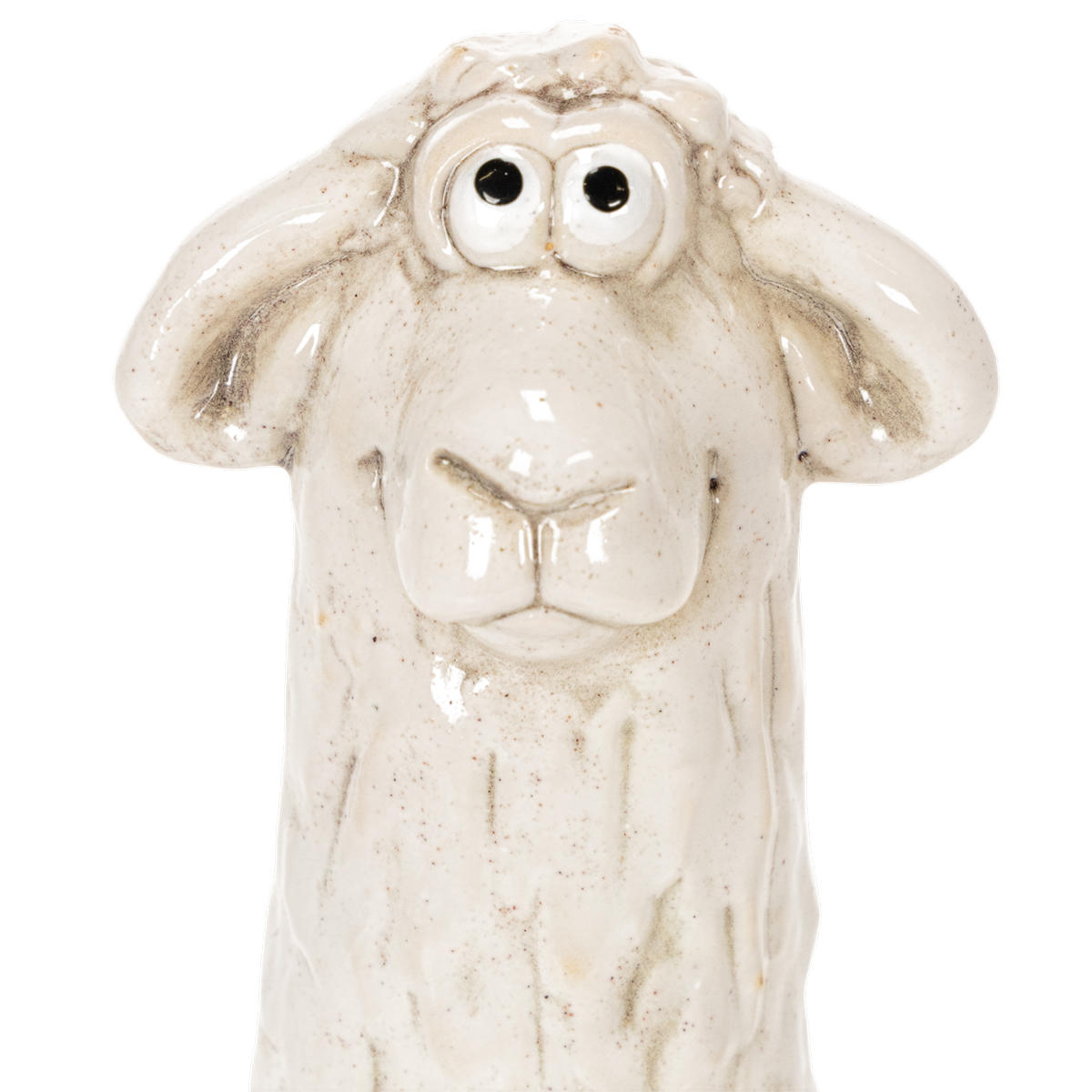 Hľadáte malý dekoratívny predmet, ktorý vnesie do vašich izieb šarm a útulnosť? Potom je táto keramická figúrka ovečky presne to pravé! Vďaka svojej roztomilej sediacej póze a s láskou vytvorenému dizajnu je to špeciálny pútač pozornosti nielen na Veľkú noc, ale po celý rok. Či už je usporiadaná na stole, položená na parapete alebo dokonca ako ozdoba na balkóne – táto figúrka zaručene upúta pozornosť. Teplý biely odtieň v kombinácii s visiacimi nožičkami zo šnúry a hnedými chodidlami dodáva keramickej figúrke hravý a zároveň nadčasový vzhľad. Ideálna do interiérov vo vidieckom štýle alebo škandinávskom štýle. Chcete vytvoriť magickú kombináciu? Vyskúšajte to s prírodnými materiálmi, ako je drevo alebo mach, ako základom. Nechajte svoju kreativitu uzdu!