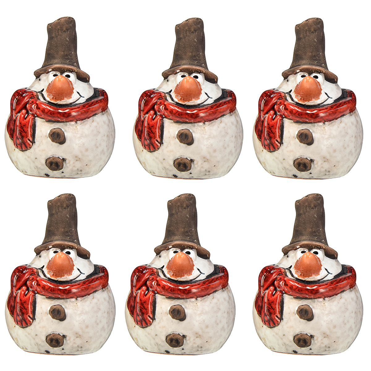 Keramická figúrka snehuliaka, biela, 6,9 cm – zimná vianočná dekorácia – 6 ks