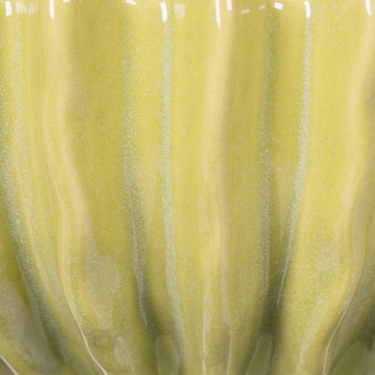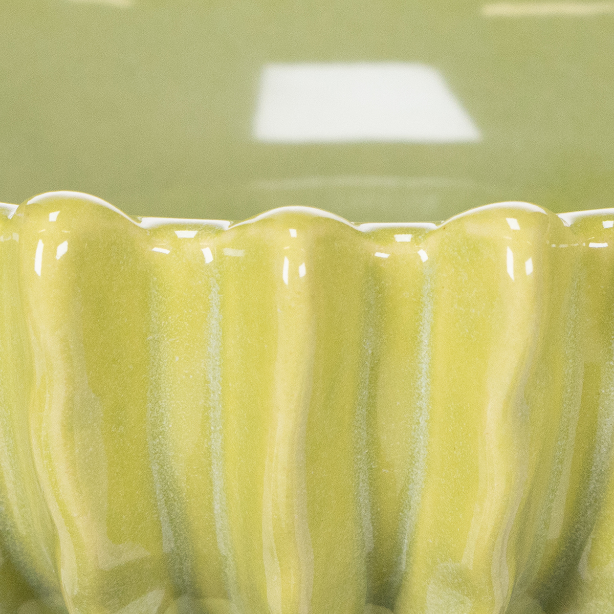 Naša zelená keramická misa s priemerom 21 cm nie je len funkčným doplnkom do domácnosti, ale aj výrazným kúskom moderného dizajnu. Vysokokvalitný keramický materiál zaujme svojím hladkým, lesklým povrchom a precíznym remeselným spracovaním. Inšpirovaný rebrovaný dizajn je obzvlášť výrazný, hravo odkazuje na prírodu a pripomína kaktusy. Svieža zelená farba tento dojem umocňuje a prináša živosť do každej miestnosti.