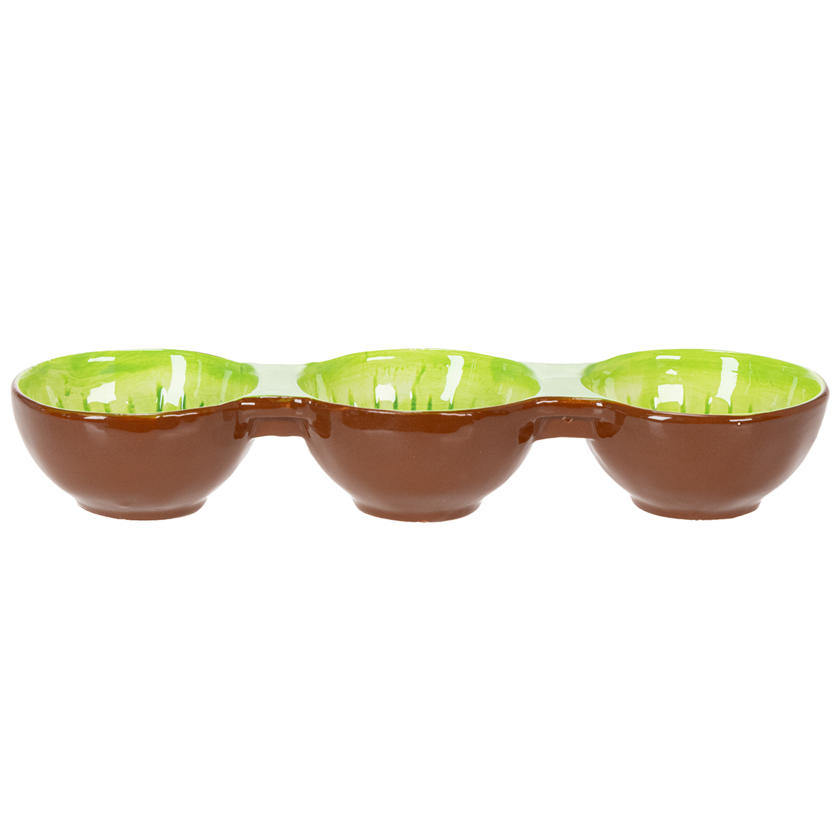 - Trojdielny dizajn so samostatnými miskami – ideálny na tapas, občerstvenie a dipy.