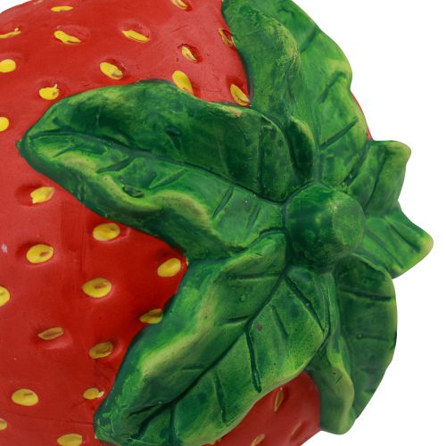 Ak ste fanúšikom jahodových ozdôb, potom je táto keramická pokladnička pre vás skutočným must have! Pokladnička má tvar jahody, ktorá leží šikmo na boku.Na vrchnej strane dekoratívnej keramiky je typická štrbina na vkladanie mincí a bankoviek. Na spodnej strane je gumená zátka, ktorá sa dá ľahko odstrániť, aby ste v prípade potreby ľahko vybrali peniaze z ozdobnej jahody.