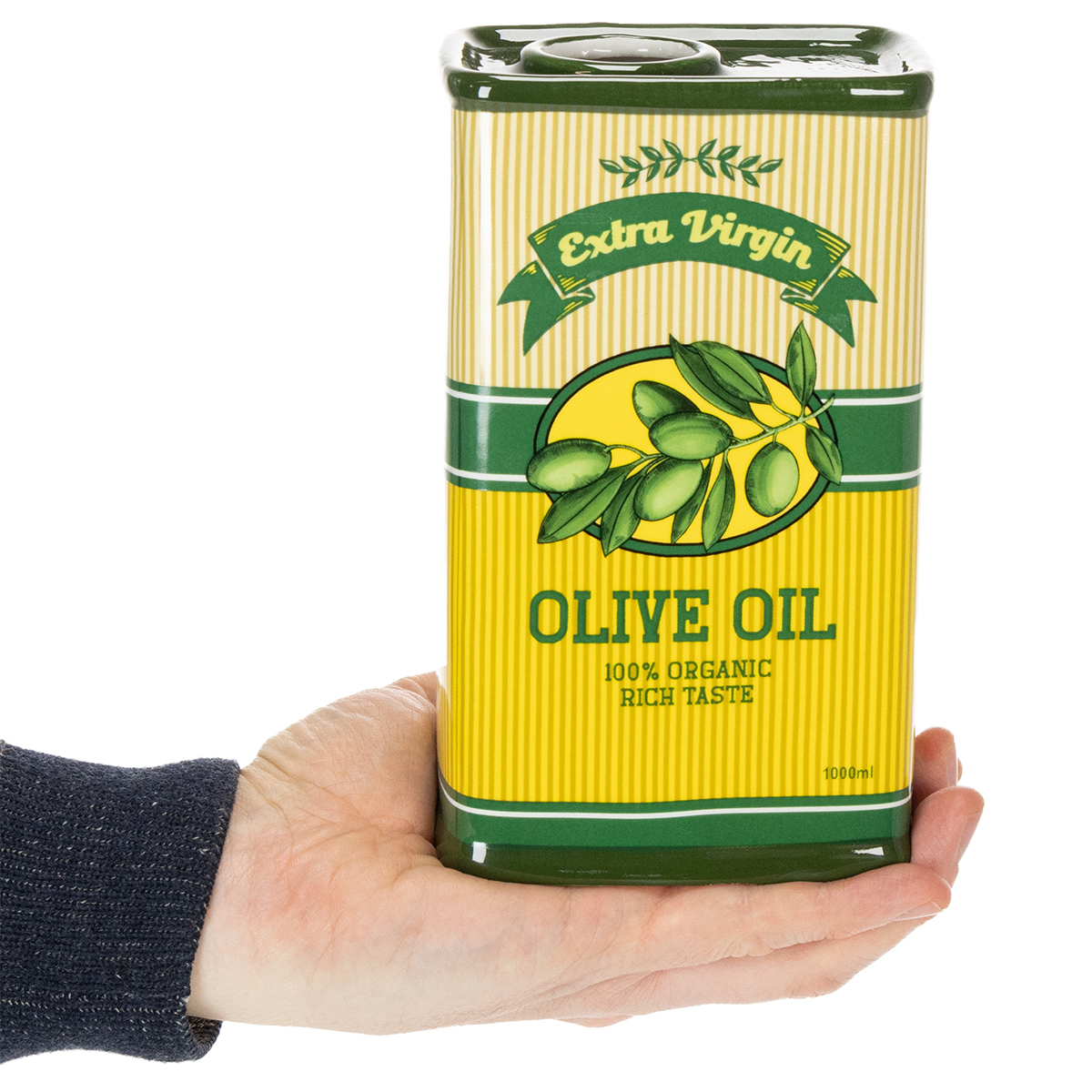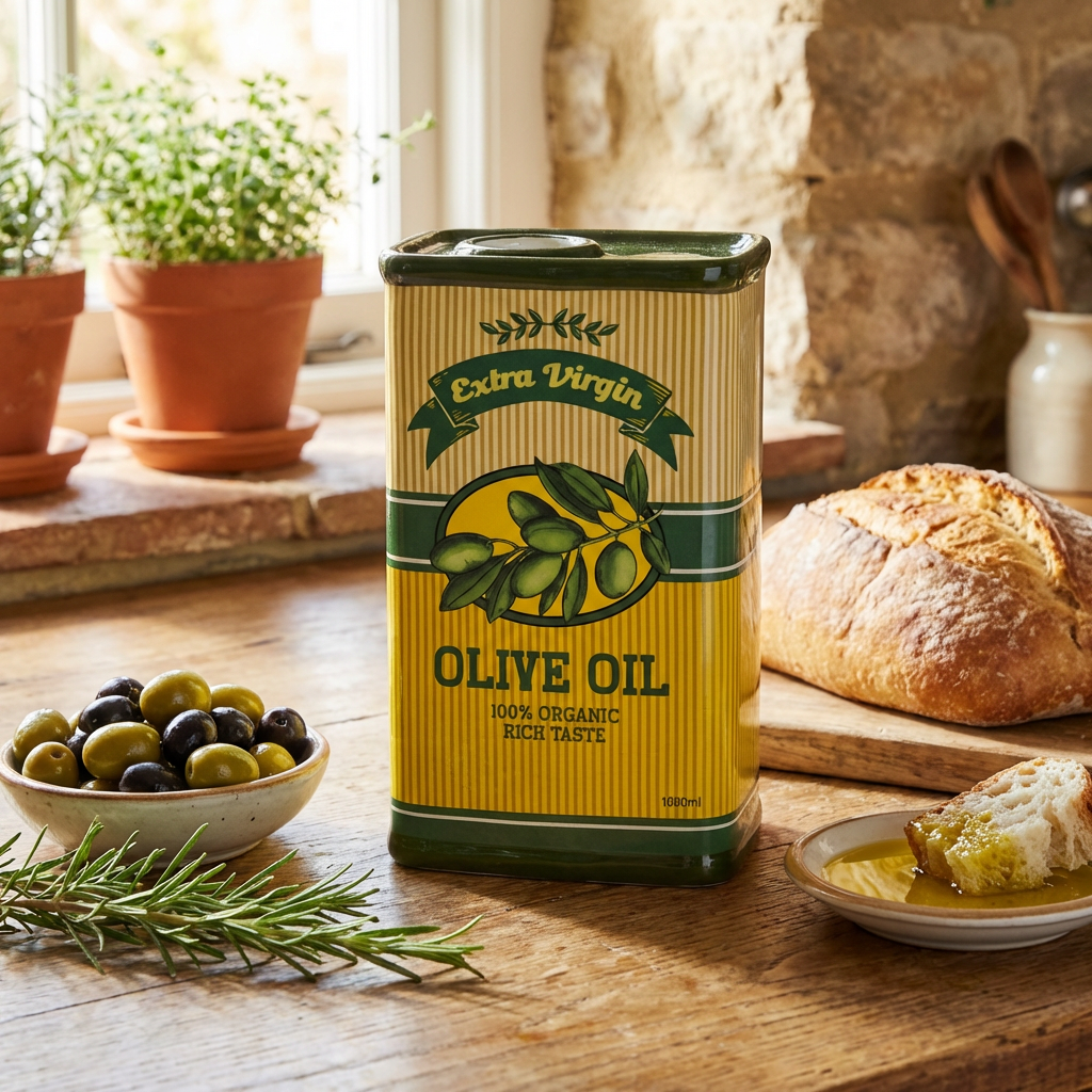 - Farba: Sýta zelená s retro potlačou s motívom olivového oleja