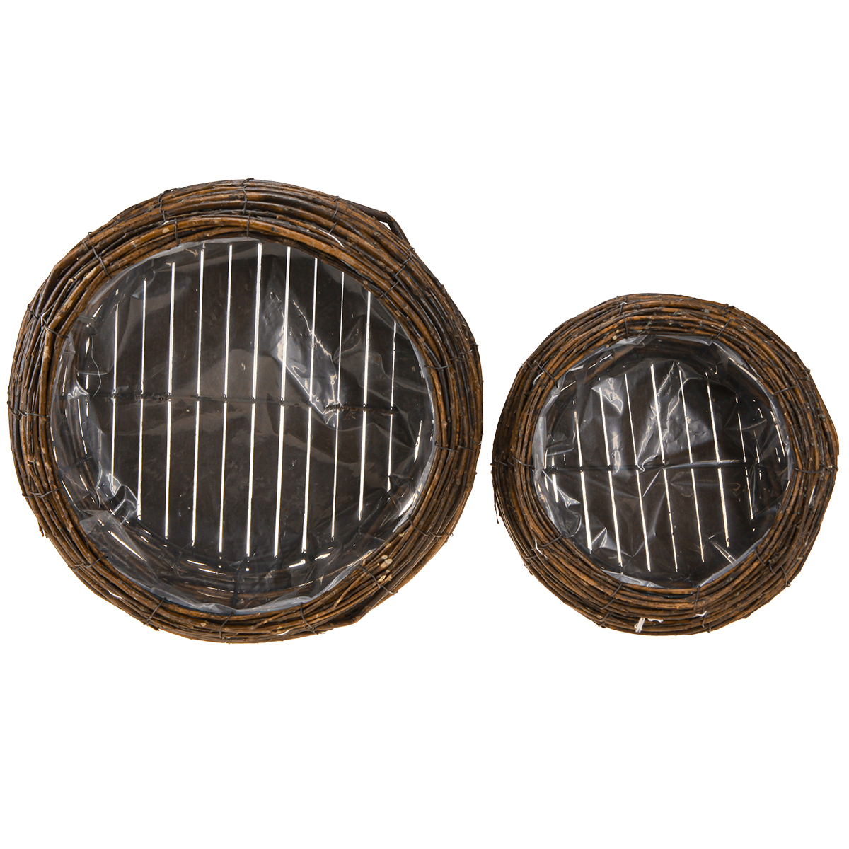 Kôš na rastliny okrúhly s fóliovým prúteným košíkom hnedý Ø32/23cm sada 2 ks