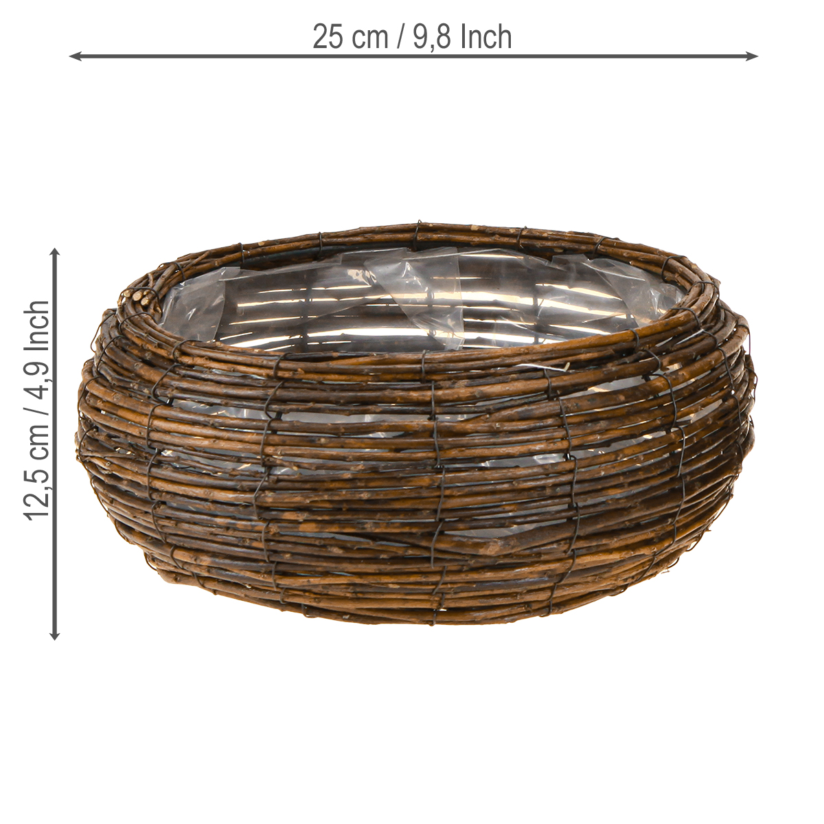 V sade dvoch kusov je okrúhly kôš na rastliny s fóliou ideálnou voľbou pre každého, kto chce pridať prírodné akcenty. Tieto dekoratívne prútené koše spájajú rustikálnu eleganciu s praktickou funkčnosťou a sú ideálne pre štýlový dizajn vo vidieckom štýle. Vysokokvalitné vŕbové konáre sú navinuté na pevnej kovovej konštrukcii a vytvárajú odolný a robustný produkt. Vďaka integrovanej fólii sú košíky ihneď pripravené na osadenie vašimi obľúbenými kvetmi alebo bylinkami. Či už na terase, balkóne alebo na parapete – tieto koše na rastliny dokonale vystavia vaše zelené rastliny a kvety a dokonale sa hodia k ostatným prírodným materiálom a doplnkom z radu Floristik24.