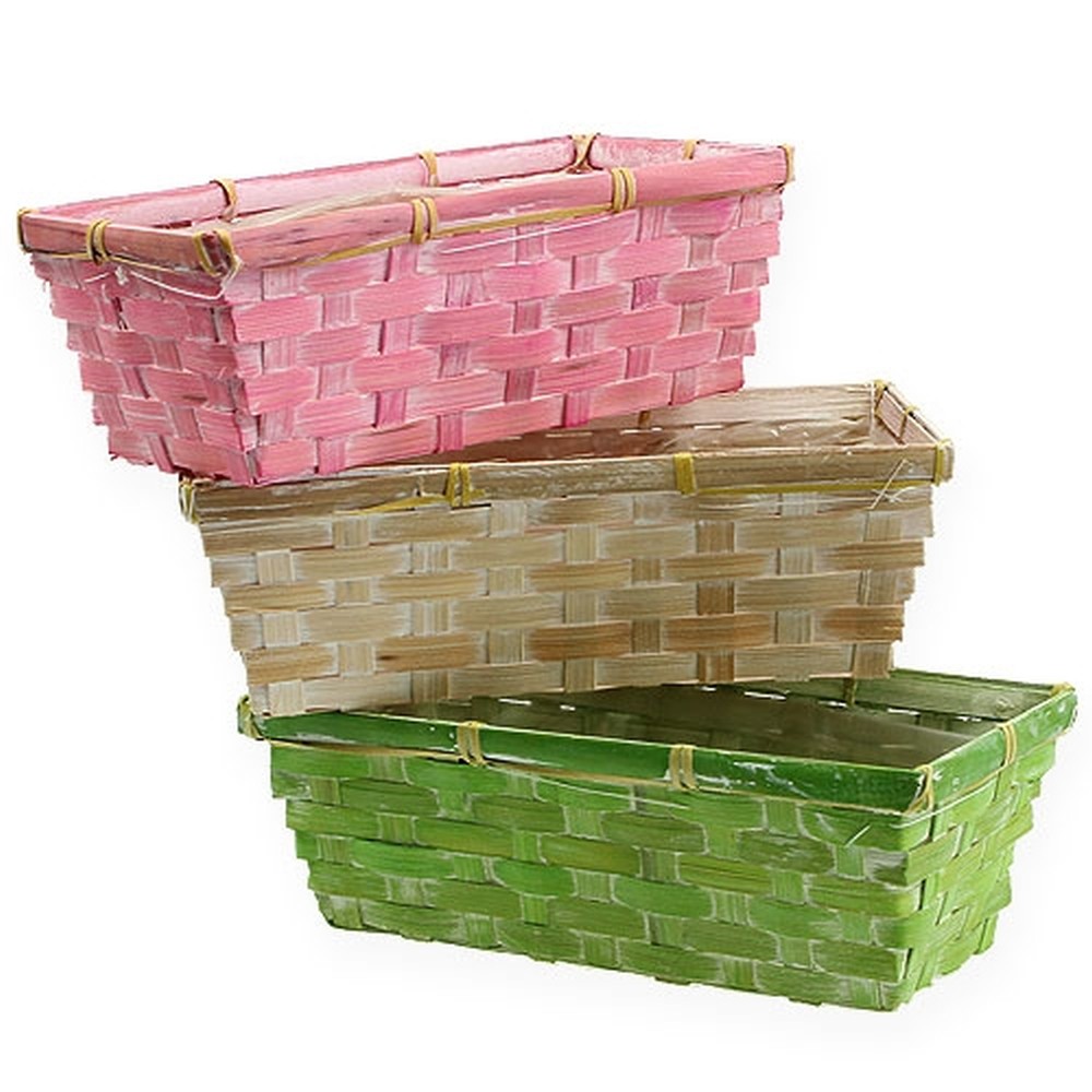 Každý štvorcový košík na rastliny z rôznofarebnej sady meria približne 20 x 11 x 7 centimetrov. Nášľapná plocha meria približne 16 x 7 centimetrov. V sade 8 kusov sú farby ružová a zelená dostupná po tri krát a farba natural je dostupná dvakrát.