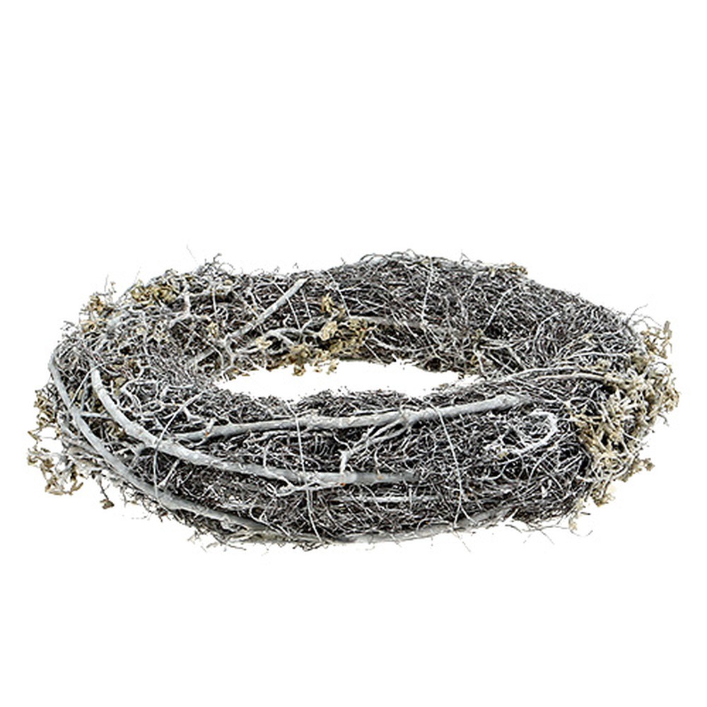 Tento biely konárový veniec je ideálnym základom pre elegantný pohrebný veniec! Zväzok vetvičiek má medzi jednotlivými vetvami dostatok miesta na pridanie ďalších prírodnín, ako sú borovicové končeky, kokosové listy, trstina a sušené kvety. Pamätný veniec potom môžete položiť na náhrobok alebo ho použiť ako stolový veniec pri spomienke na Nedeľu zosnulých. Samozrejme, že veniec môžete ozdobiť aj slávnostne v čase Vianoc a premeniť ho na adventný veniec so 4 svietnikmi.Konárový veniec v bielej farbe má celkový priemer cca 40 centimetrov a vnútorný priemer cca 23 centimetrov, pričom výška venca je cca 7 centimetrov. Vetvičky a konáre boli starostlivo opracované na kovový krúžok, pripevnené kovovým drôtom a následne natreté bielou farbou.