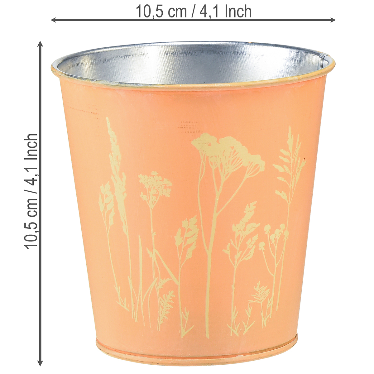 Lúčne kvety v letnom vetre - tento kovový kvetináč v jemnej broskyňovej farbe vpustí leto do dekorácie vášho stola. Kvety sa lesknú zlatožltou vďaka farebnému kvetináču.