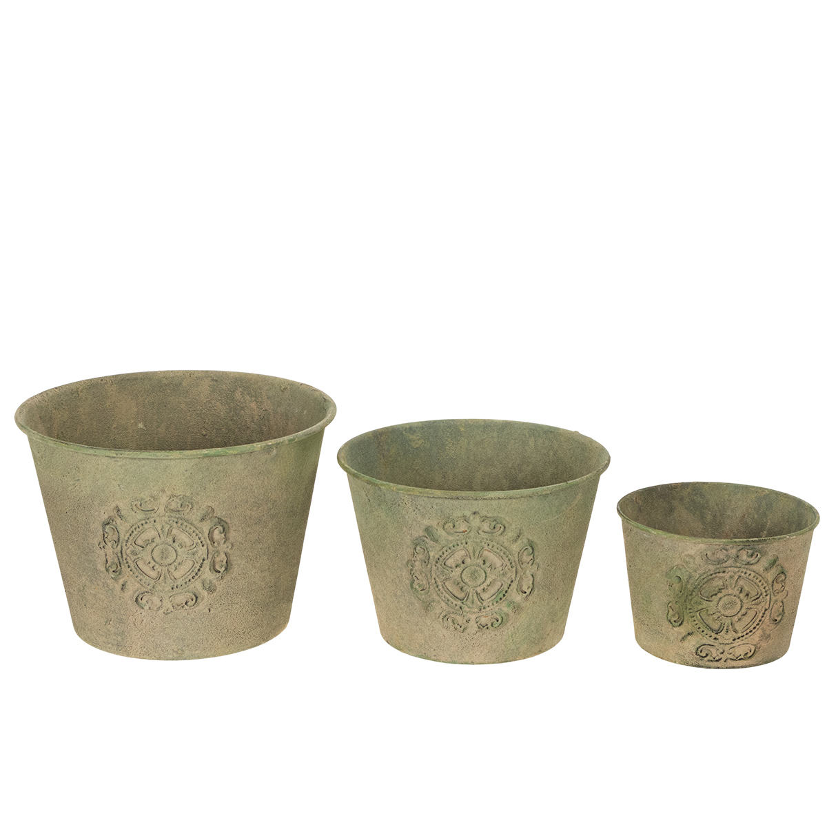 Kovový kvetináč, zelený, vintage, Ø22 cm – 13,5 cm, sada 3 kusov