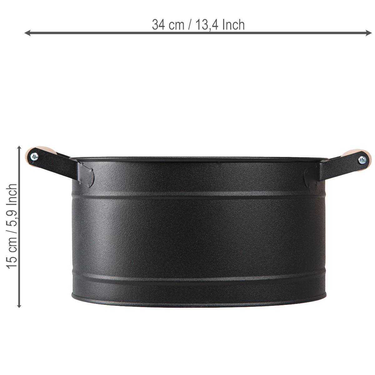 Náš kovový kvetináč v čiernej farbe spája moderný dizajn s vysokou funkčnosťou. Oválna misa zaujme robustnou konštrukciou a štýlovou kombináciou čierneho kovu a drevených rúčok v prírodnej farbe. Tento oválny kvetináč je preto ideálny pre každého, kto oceňuje dizajn a kvalitu.
