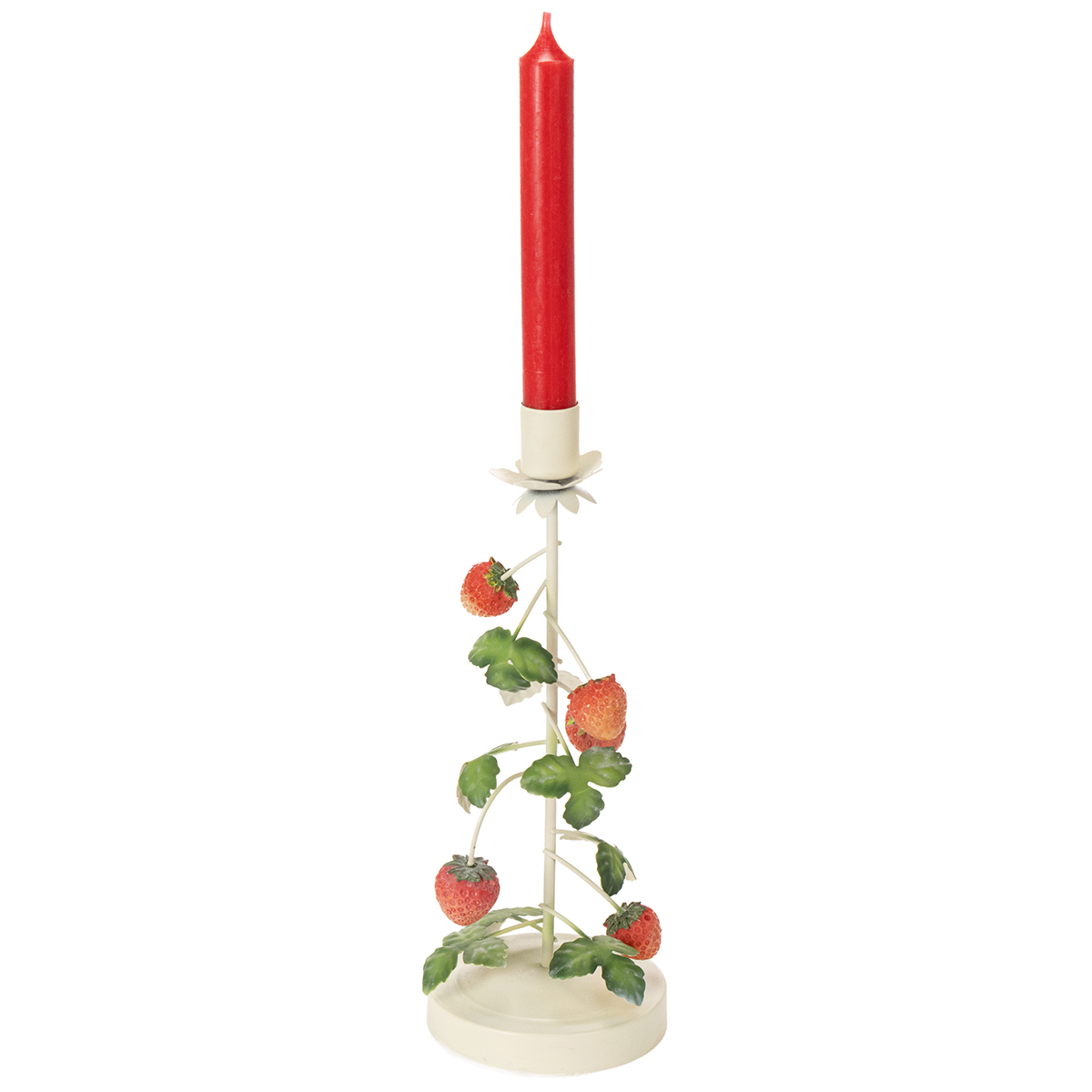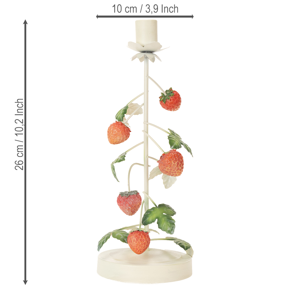 Kovový svietnik s jahodovou dekoráciou, krémový, okrúhly, V26 cm