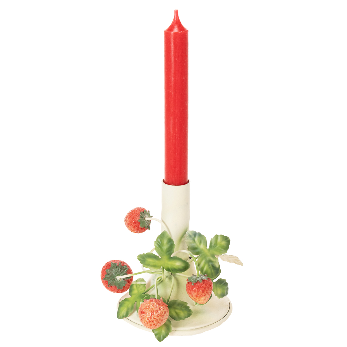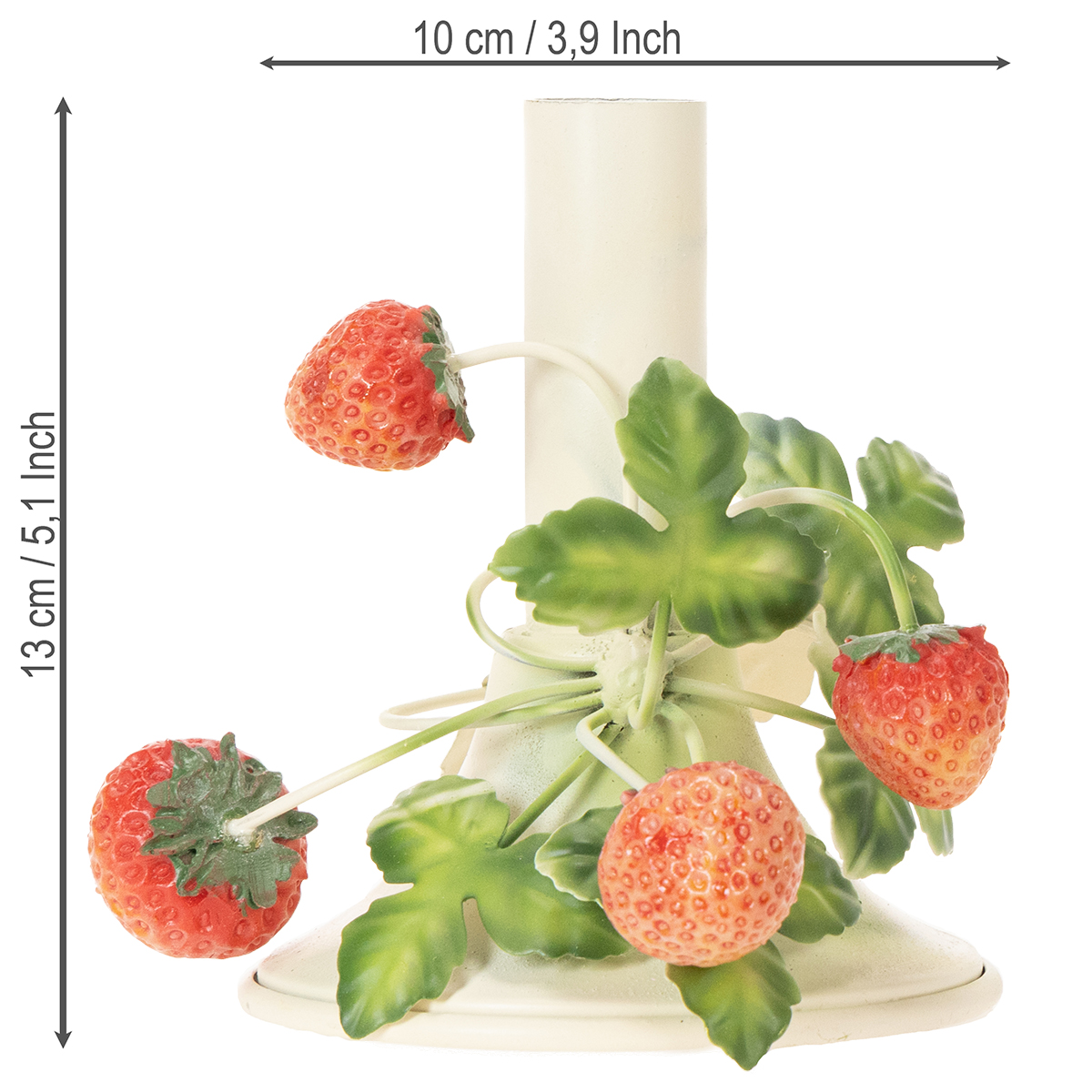 Kovový svietnik s jahodovou dekoráciou, letný krém, V13cm