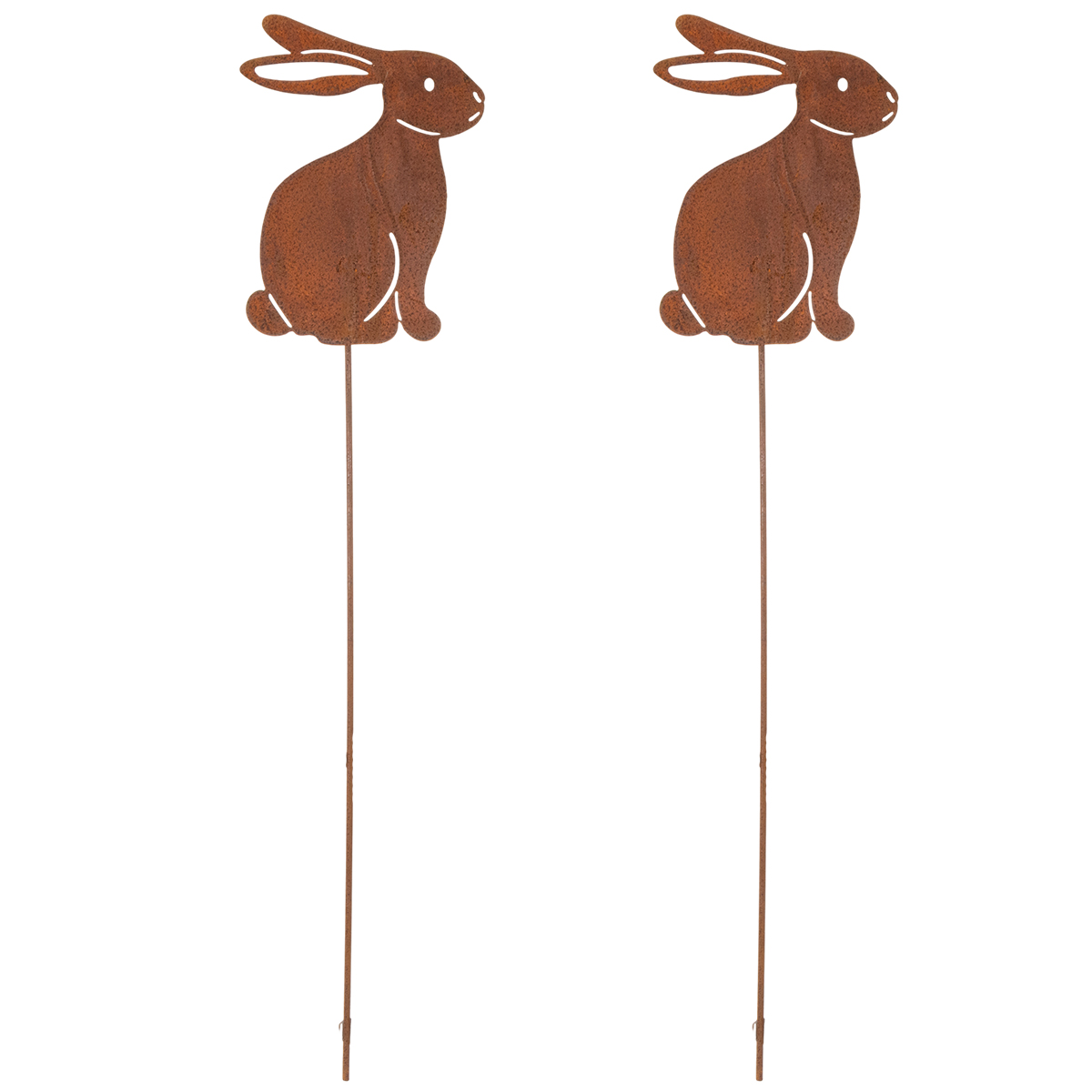 Kovový záhradný kolík v tvare veľkonočného zajačika pre štýlovú jarnú dekoráciu vonku, 80 cm