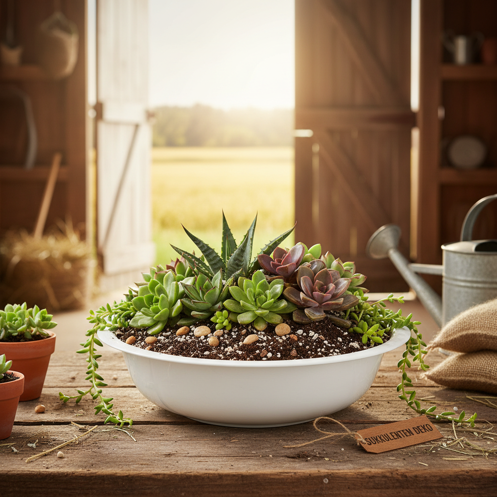 Dekoratívna miska je vhodná nielen na výsadbu (najlepšie je kvetinovú misku prikryť fóliou), ale aj na aranžmán na stôl, ktorému chcete dodať jemne rustikálny nádych.