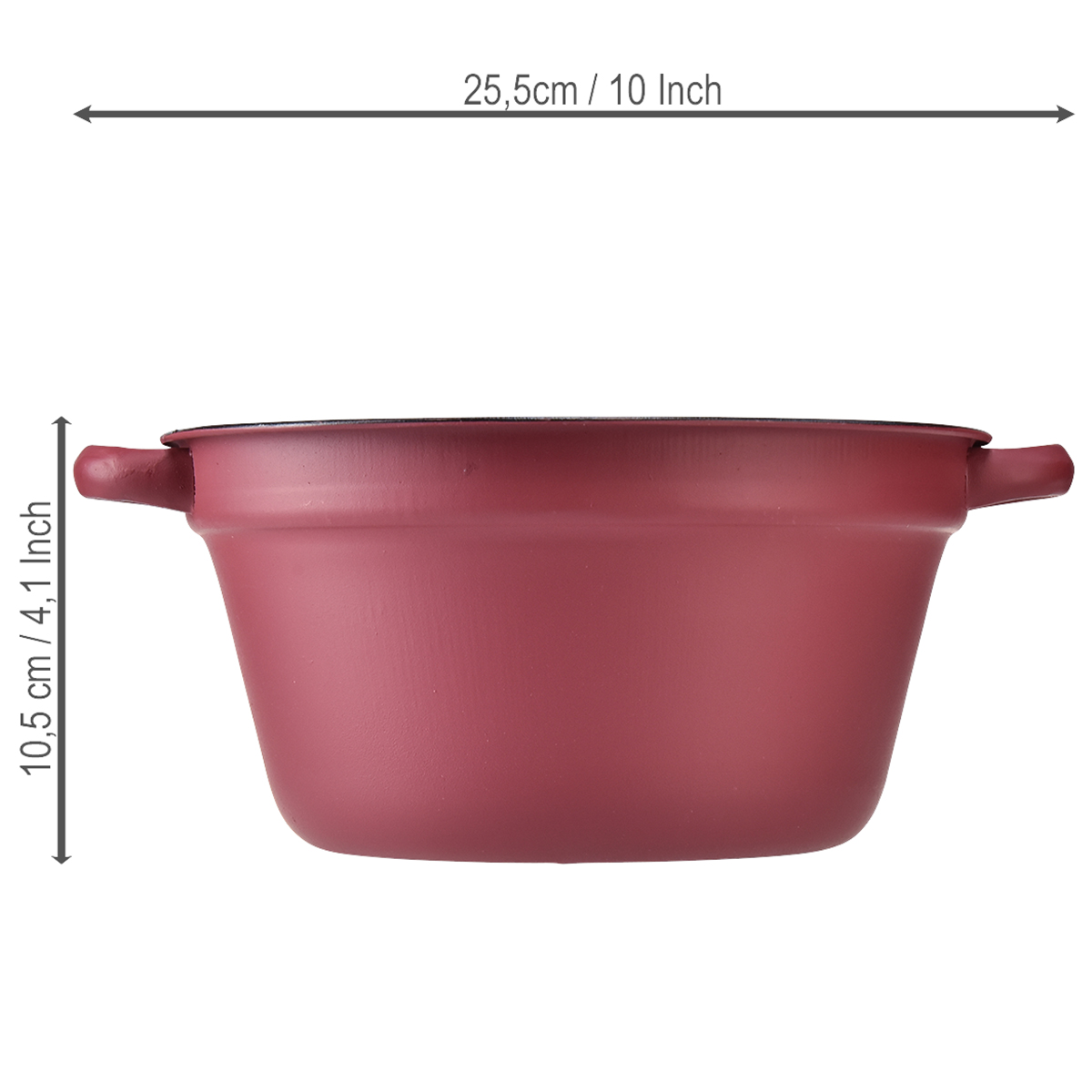 Toto okrúhle kovové vedierko je dokonalým doplnkom do každej domácnosti. Vonkajšia strana nádoby je prezentovaná v živej červenej, zatiaľ čo vnútro prekvapí hnedým povrchom. Čierna linka v hornej časti dodáva dekoratívnej vani pre rastliny elegantný nádych. Rukoväte zaisťujú pohodlnú prepravu a všestrannosť použitia.