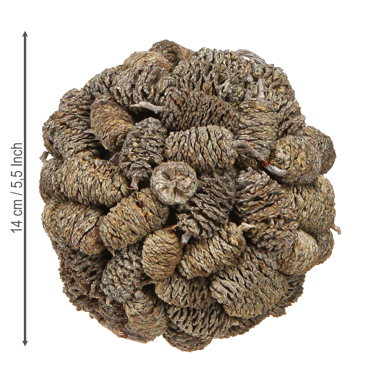 Prineste zimu do svojho domova – alebo skôr na svoj vianočný stromček! Táto šišková guľa vyrobená z bielených jelšových šišiek dodá vašej výzdobe nádherne prírodný nádych. Či už ako jedinečná ozdoba na vianočný stromček, štýlový doplnok zimnej výzdoby alebo ako slávnostný akcent na pamätných venciach – tento výnimočný kus prírodnej dekorácie vždy vytvorí útulnú atmosféru. Jemný biely lesk na očarujúcich jelšových šiškách prináša zimnú atmosféru priamo do vášho domova.