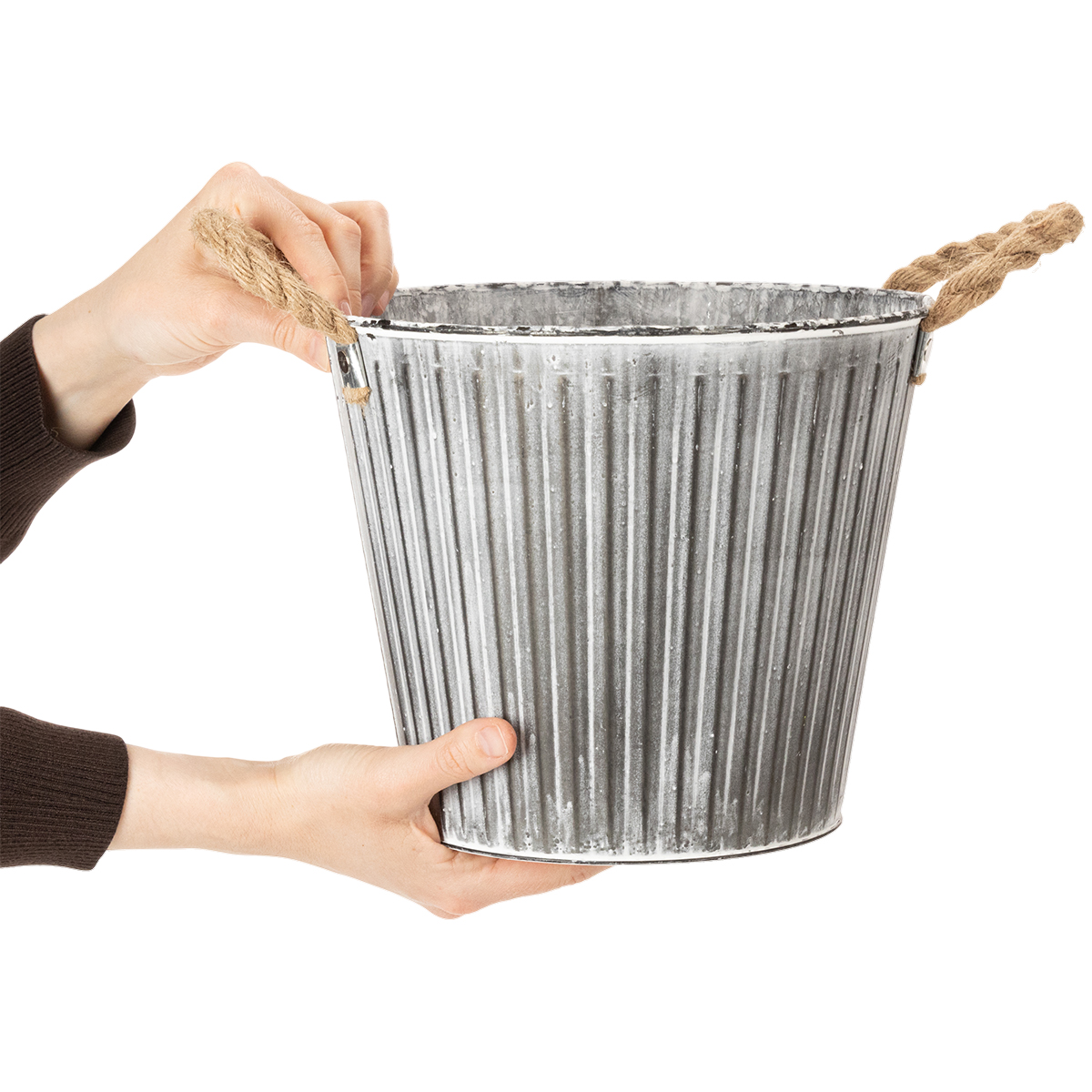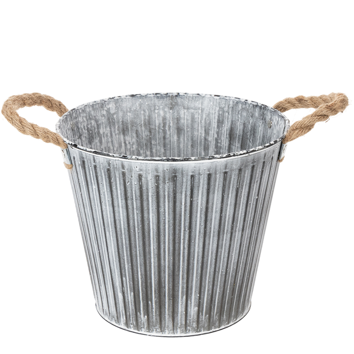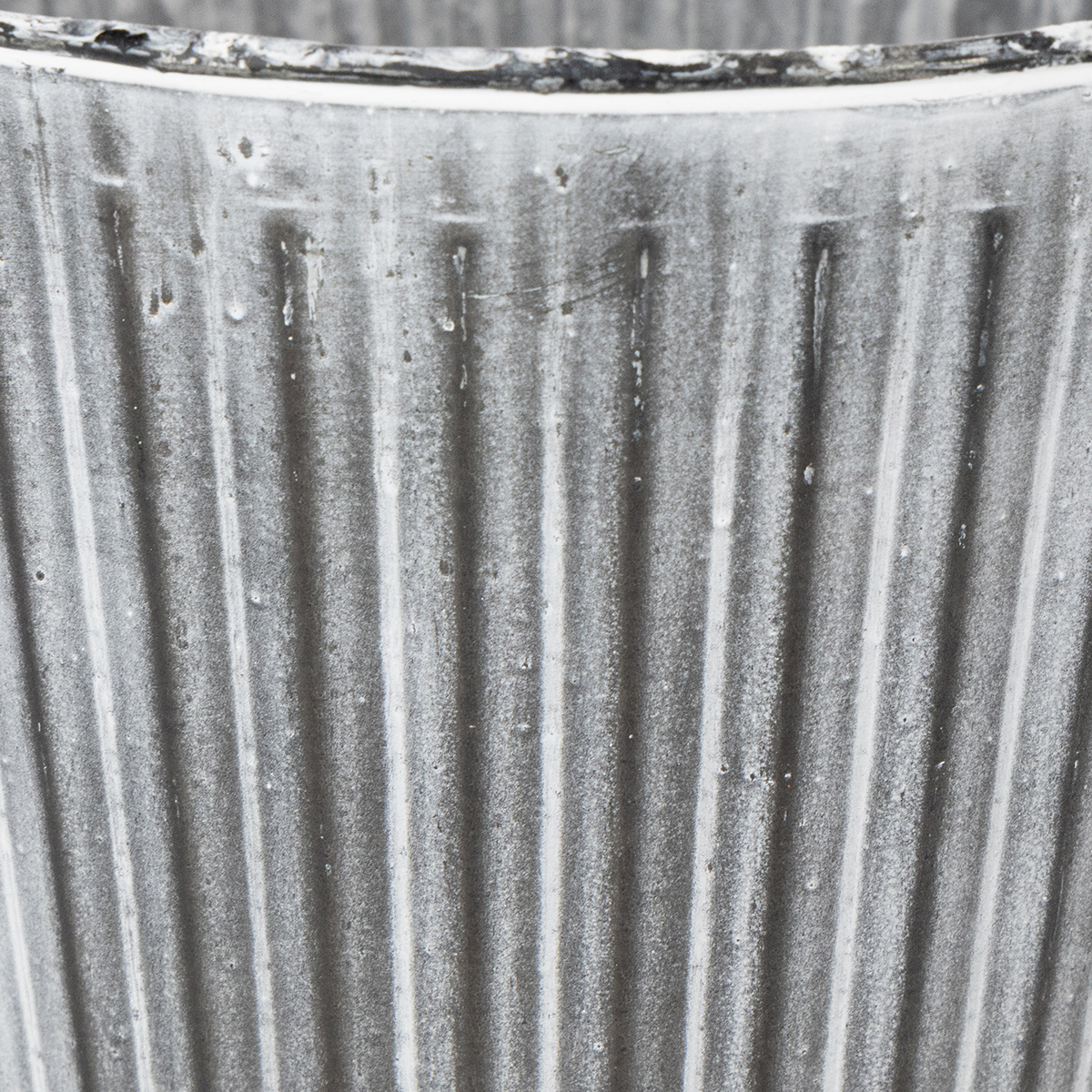Skombinujte okrúhly kovový črepník s inými kovovými črepníkmi s líniovým embosovaním z kvalitnej série črepníkov VIANA z nášho sortimentu!