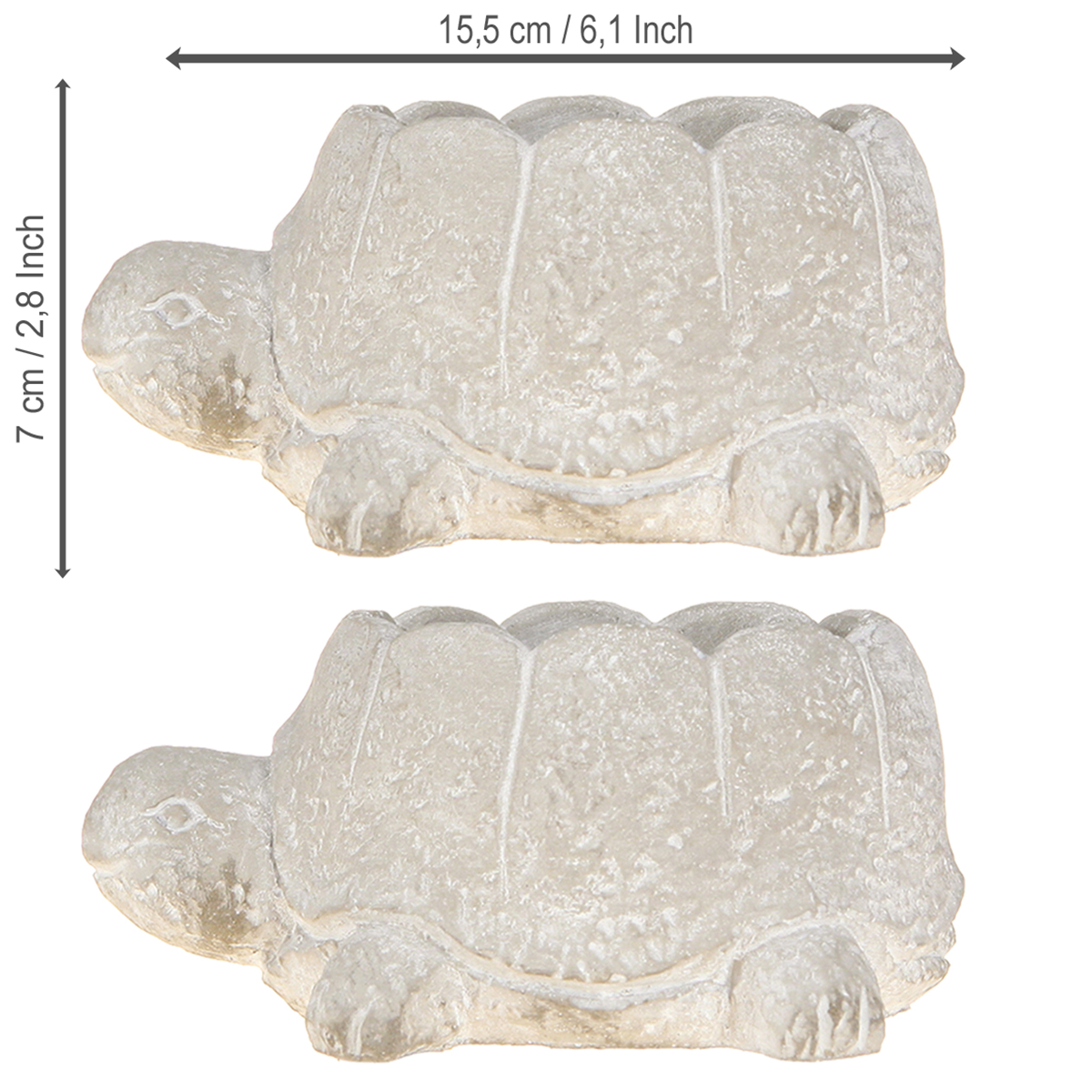 Objavte rozmanitosť kreatívnych záhradných dekorácií s naším jedinečným kvetináčom v tvare korytnačky. Táto očarujúca betónová figúrka sa perfektne hodí do každej záhrady alebo obytného prostredia a dáva sezónnemu akcentu, najmä na stoloch. Táto dekoratívna figúrka so sivobielym umývaným povrchom stelesňuje obľúbený štýl shabby chic, ktorý prináša závan čerstvého vzduchu na jar aj v lete. Najmä jemné detaily, ako sú láskyplne tvarované nôžky korytnačky, dodávajú tejto dekorácii živý vzhľad. Rozhodnutie o kúpe bude pre vás jednoduché, pretože súprava obsahuje dva kvetináče, ktoré ponúkajú kreatívne možnosti pre balkónové aranžmány, dekorácie na parapety a dekorácie na kuchynský stôl. Náš korytnačí kvetináč je tiež perfektným darčekom pre milovníkov záhrad a tých, ktorí sa nimi chcú stať. Na Floristik24 nájdete ďalšie ladiace dekoračné predmety, ktoré podčiarknu váš osobný štýl a dokonale ladia s týmto produktom. Popustite uzdu svojej kreativite a premeňte svoj domov na zelenú oázu pohody!
