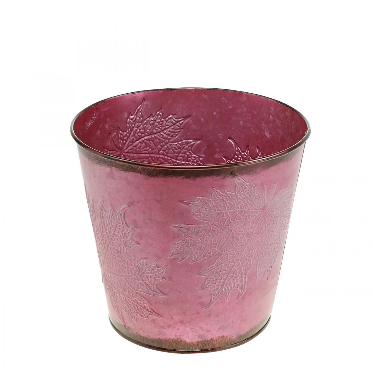 Názov produktu: Kvetináč, kovové vedierko s listami, jesenná dekorácia vínovo červená Ø18cm V17cm
