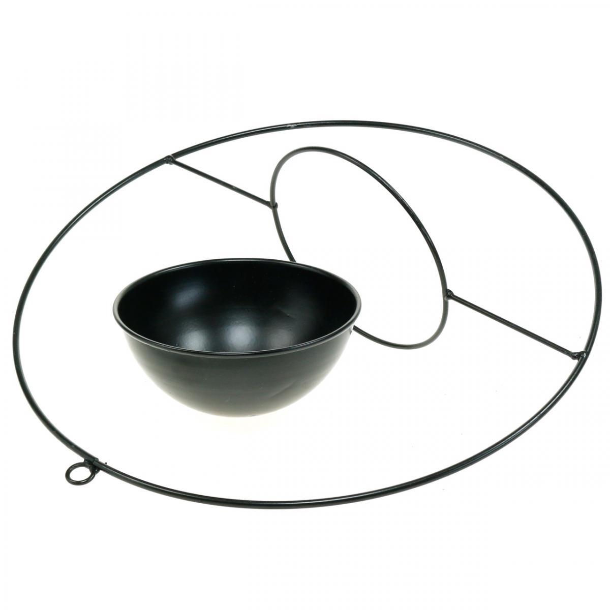 Kvetináč na zavesenie čierny kovový krúžok Ø38cm s miskou Ø15cm