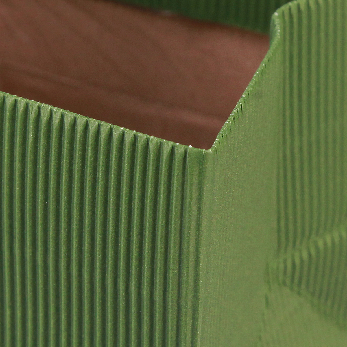 - Dekoračný kvetináč vyrobený z papiera v zelenej a olivovo zelenej farbe s vrúbkovaným povrchom
