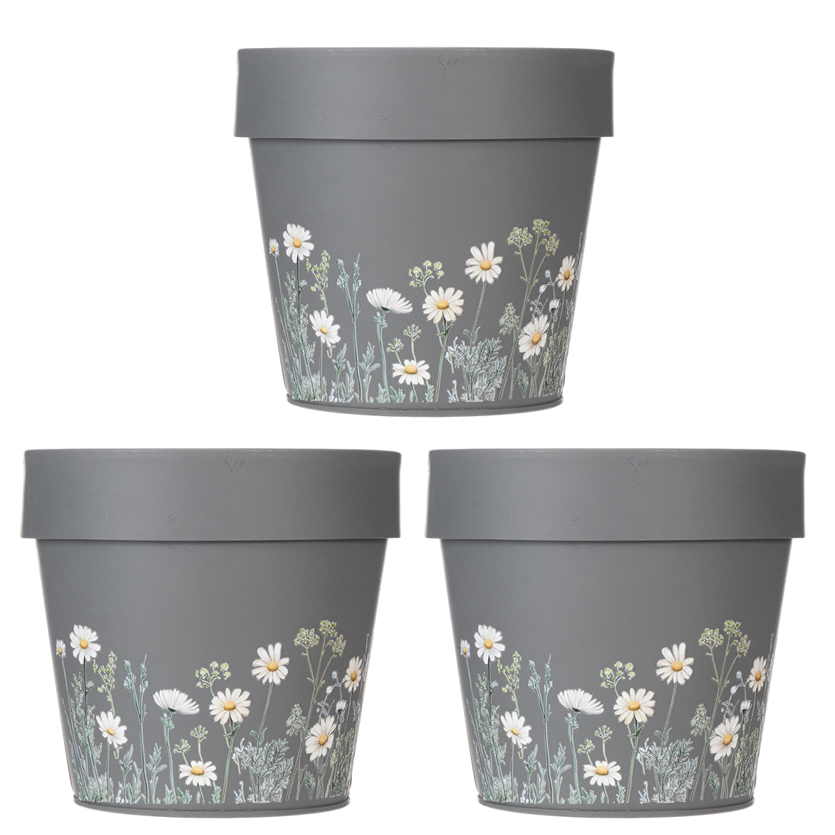 Kvetináč, ktorý evokuje pocit letnej lúky – neznie to snovo? Vďaka očarujúcemu dizajnu divokých kvetov prináša tento kvetináč nádych prírody priamo na váš balkón alebo terasu. Jemné kvety, harmonicky kombinované so sivým kovovým povrchom, vyžarujú jednoduchú eleganciu, ktorá dopĺňa moderné aj klasické prostredie. Či už plánujete žiarivú balkónovú scenériu alebo elegantný interiérový aranžmán rastlín, tieto kvetináče dokonale vyniknú naplno. A to najlepšie? Dodávajú sa v praktickej sade troch kusov! Ideálne na kombinovanie rôznych odrôd rastlín. Všestranný malý klenot, ktorý je nielen krásny, ale aj neuveriteľne praktický.