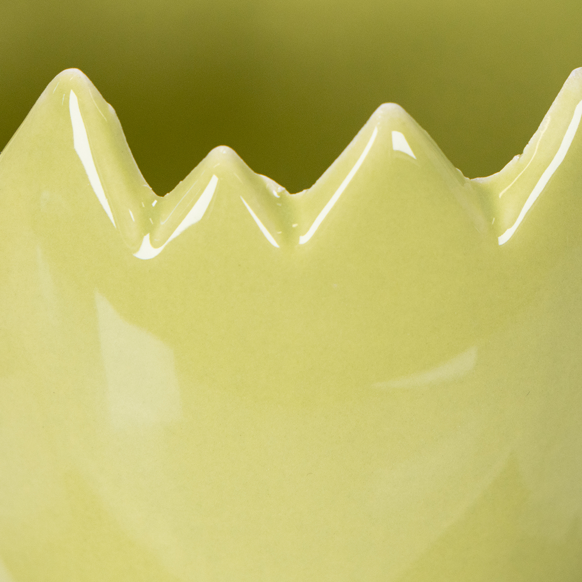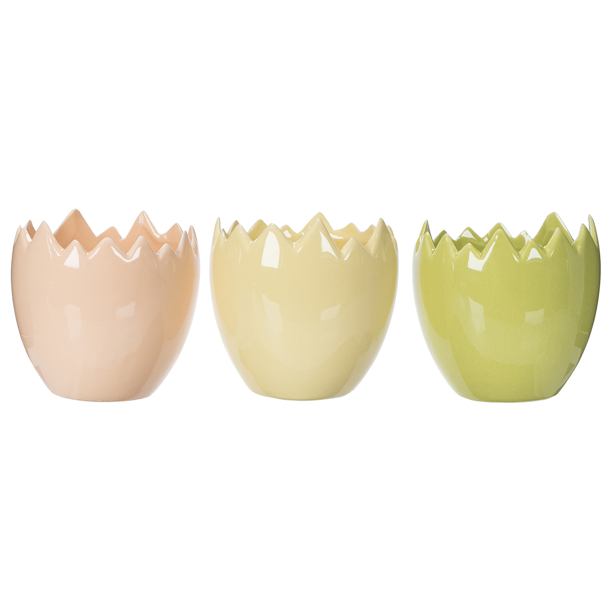 Tieto kvetináče v tvare veľkonočného vajíčka s výškou 10,5 cm a priemerom 10 cm sú ideálne pre malé jarné kvety, ako sú miniatúrne narcisy alebo hyacinty. Svoj domov tu nájdu aj bylinky alebo umelecky aranžované sušené kvety. Jemné farby žltej, zelenej a oranžovej dokonale ladia so sviežimi alebo pastelovými jarnými odtieňmi a vytvárajú veselú, no zároveň decentnú atmosféru.