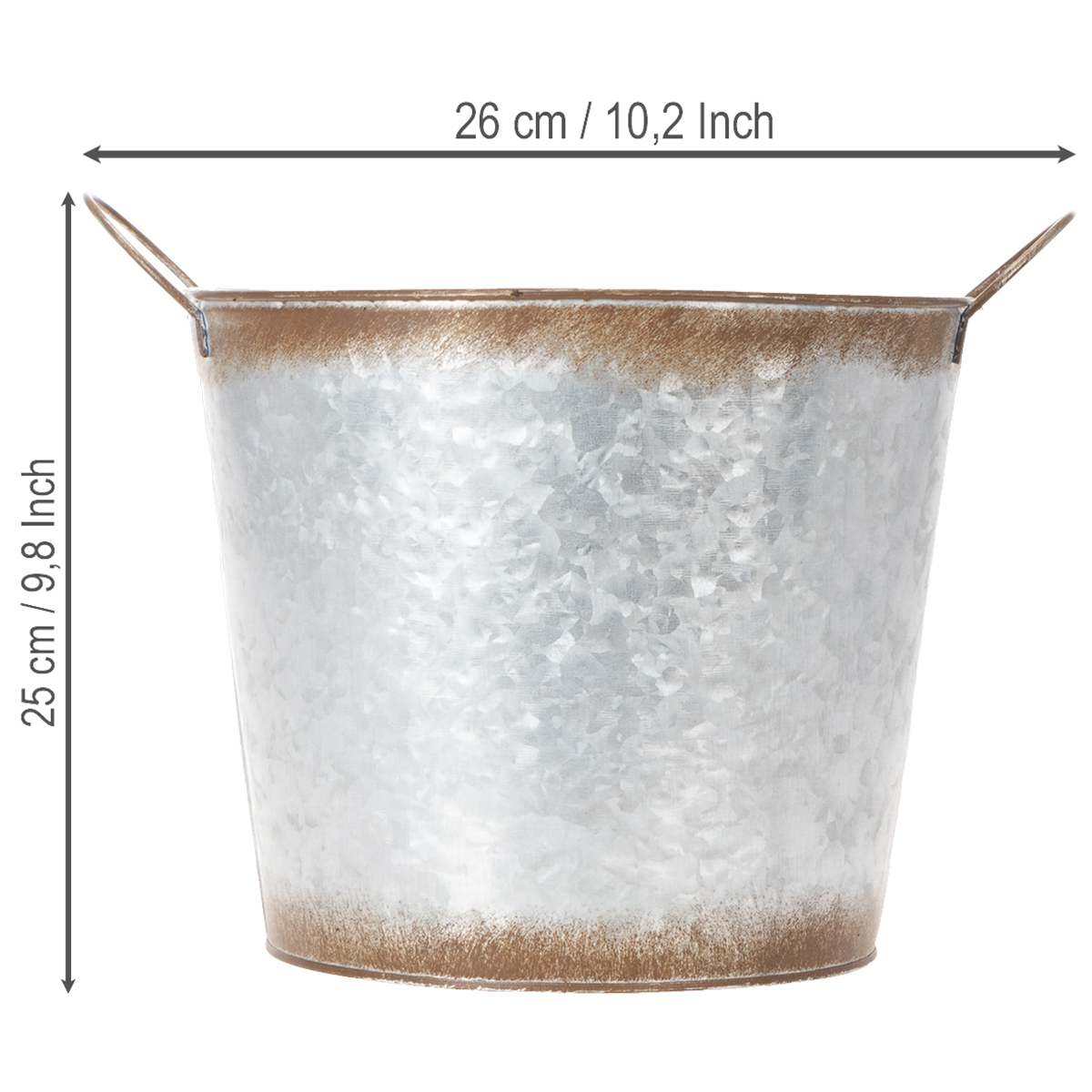 Kvetináč s rúčkami, ozdobná miska s hrdzavou úpravou, strieborná kovová nádoba Ø26cm V25,5cm