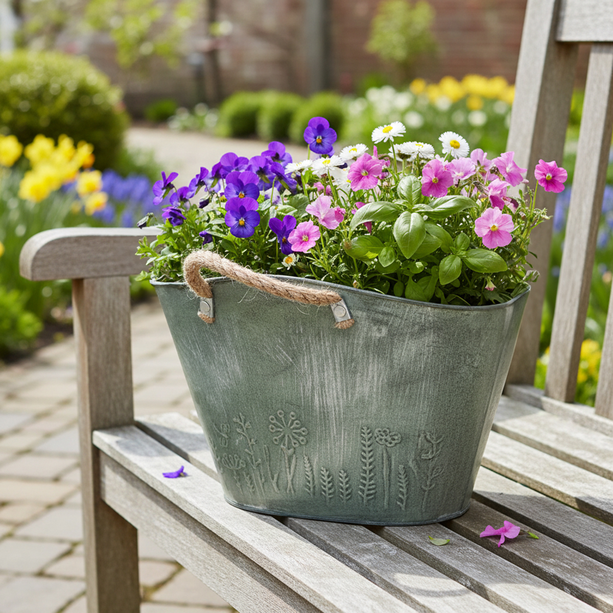 Pre ešte väčšiu kvetinovú výzdobu v kovových kvetináčoch odporúčame tento kvetináč skombinovať s rúčkami a väčším kvetináčom vo vreckovom prevedení!
