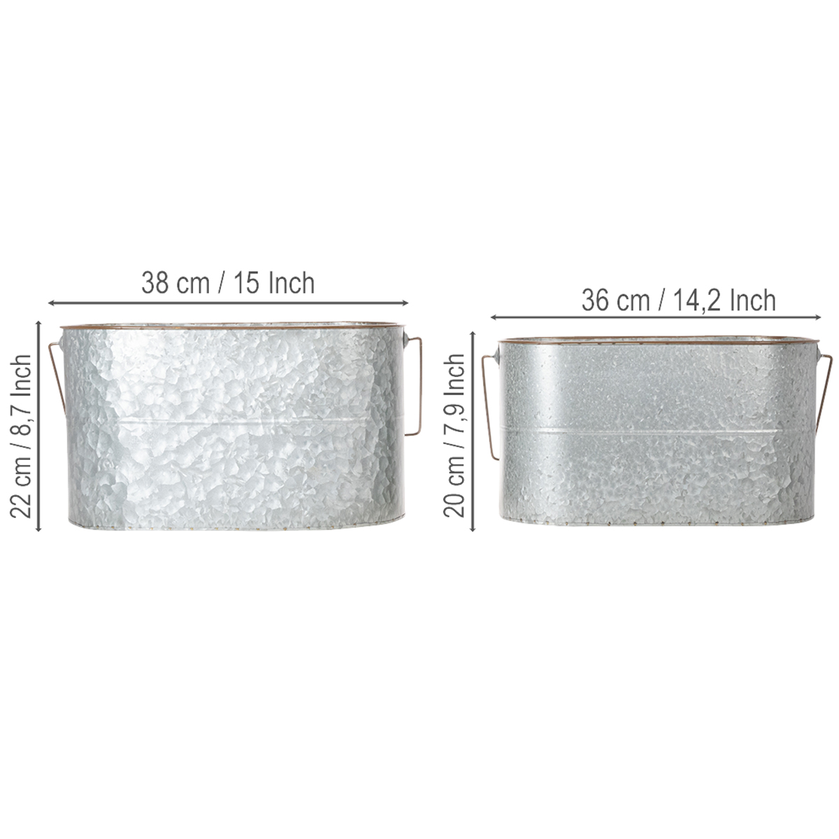 Misky na rastliny s držadlami sú kvalitné kovové kvetináče, ktoré sa dajú využiť pri mnohých príležitostiach. Podlhovasté kovové vedierka v striebornej farbe s hnedým okrajom sú naozaj skvelé ako kvetináč alebo kvetináč!