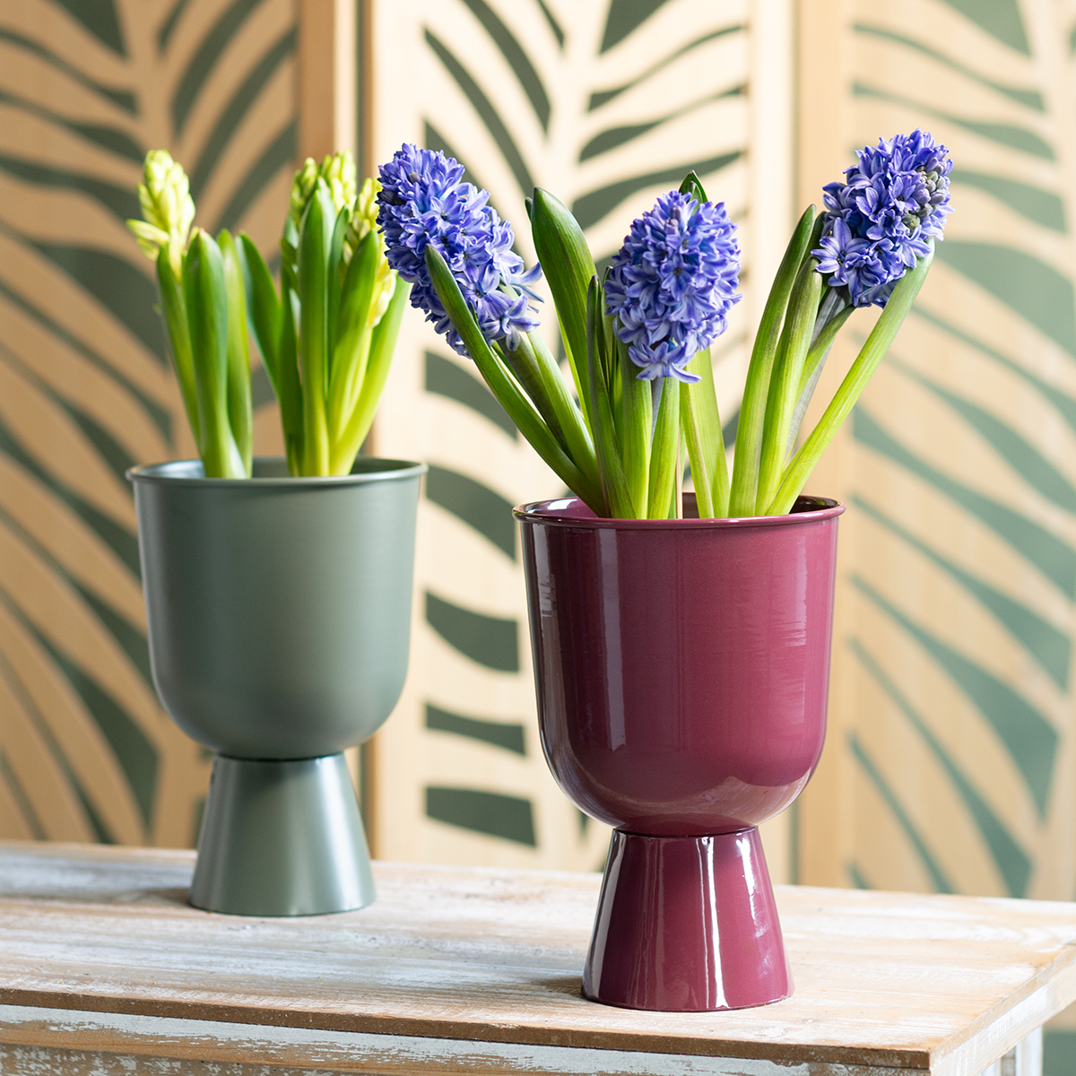 Tento kvetináč v tvare trofeje je nielen funkčný, ale aj skutočne pútavý. Vďaka svojej nádherne sýtej červenej farbe a elegantnému, decentnému kovovému vzhľadu dodá každej miestnosti moderný nádych. Jeho rozmery (priemer 16 cm a výška 23 cm) sú ideálne pre stredne veľké rastliny a robustná kovová konštrukcia zaisťuje odolnosť. Hľadáte moderný doplnok, ktorý nie je príliš rušivý, ale stále zanecháva dojem? Táto trofej bola navrhnutá presne na tento účel. Umiestnite ju na odkladací stolík v obývačke a vytvorte útulnú atmosféru. Alebo čo tak na príborník v predsieni? Určite bude témou na rozhovor! Vytvára tiež štýlovú a inšpiratívnu atmosféru v kancelárii a skvalitňuje pracovné prostredie. Pre tých, ktorí radi kreatívne pôsobia, je možné kvetináč využiť aj na iné účely: použiť ho na sušené kvety, ako držiak na perá alebo dokonca ako nezvyčajnú vázu – jednoducho úžasne všestranný. Kombinácia funkčnosti a dizajnu robí z tohto kvetináča v tvare trofeje skutočne jedinečný!