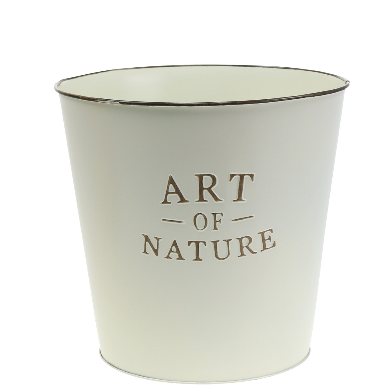 Ozdobný kvetináč krémovej farby s nostalgickým nádychom nesie na oboch stranách vyvýšený nápis "Art of Nature". Nápis je štýlovo vytlačený v pranom hnedom odtieni. Kvetináč od značky Viana sa preto dá využiť najrôznejšími spôsobmi. Kuchynské bylinky, skoré a letné kvety si prídu na svoje v jednoduchom plechovom kvetináči, rovnako ako okrasné trávy a kvetinové aranžmány.