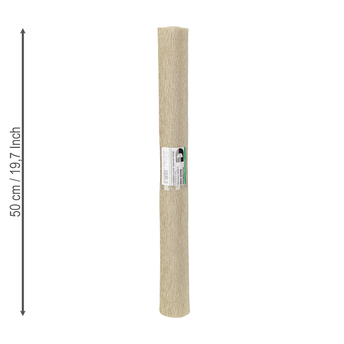 Prírodný kvetinársky krepový papier má rozmery približne 50 x 250 centimetrov. Je navinutý do kotúča s hmotnosťou približne 160 gramov.