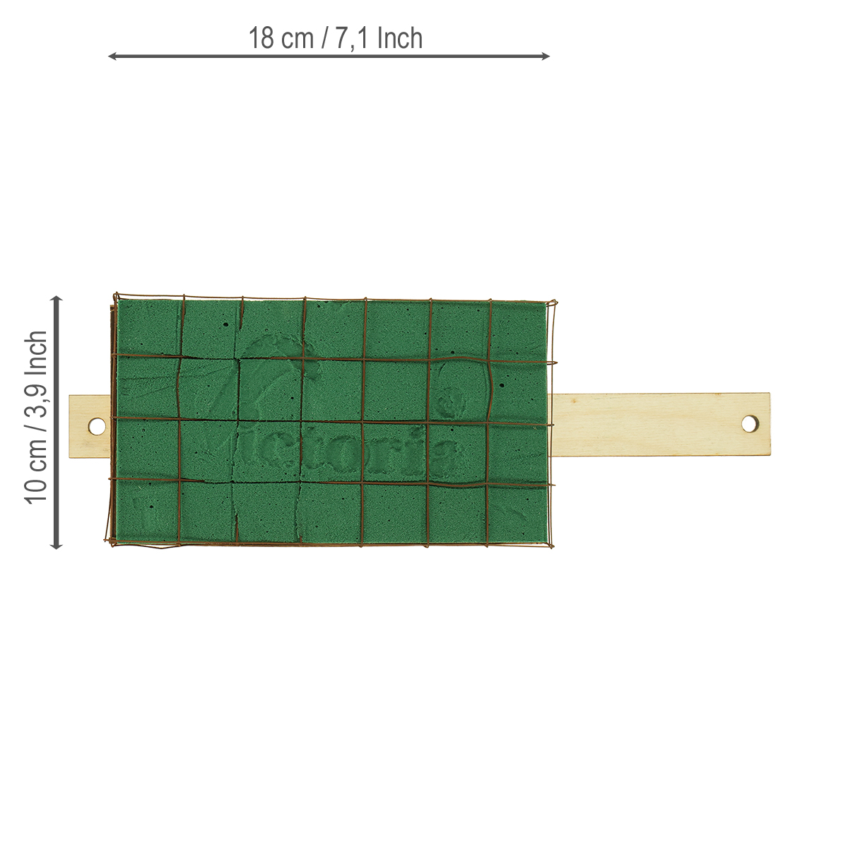 Rozmery kvetinovej peny (D × Š × V): cca 18 cm × 10 cm × 7,5 cm